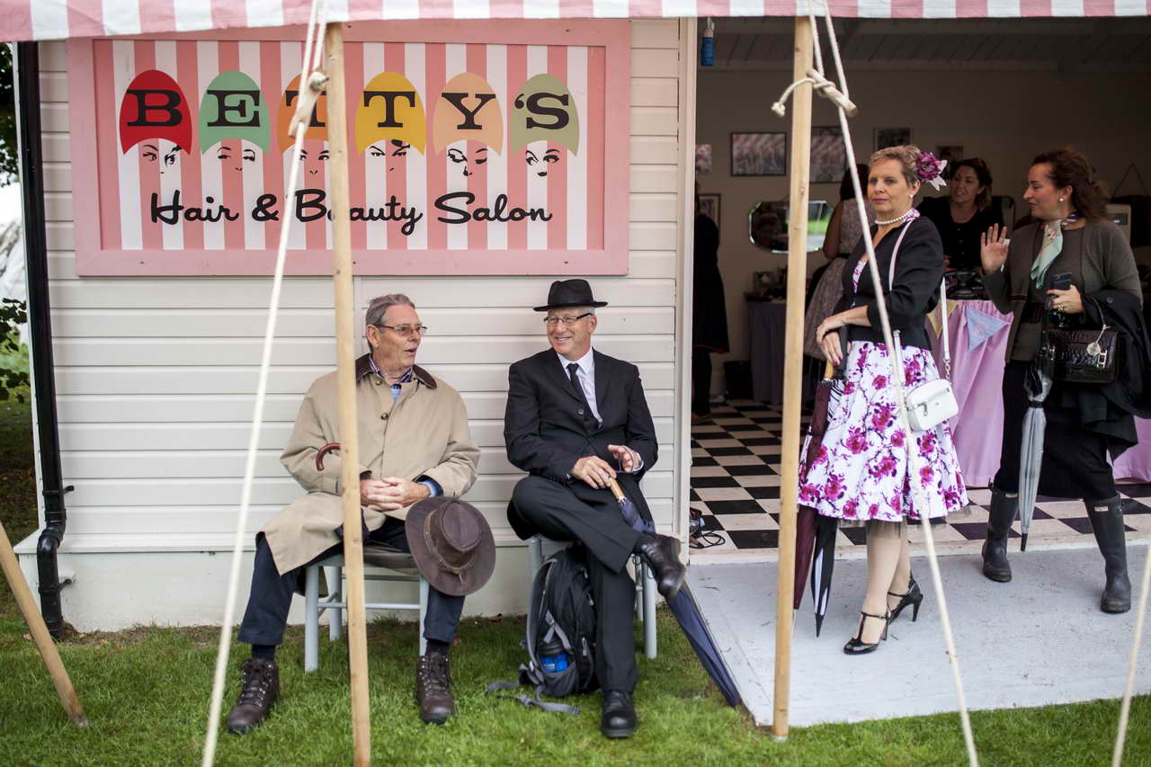Ας πάρουμε όμως τα πράγματα με τη σειρά: Η Παρασκευή είναι η ημέρα που δίνεται η ευκαιρία στους επισκέπτες να δουν όλα τα αγωνιστικά αυτοκίνητα, μοτοσυκλέτες και αεροσκάφη σε επίδειξη, ενώ οι συμμετέχοντες κάνουν δοκιμές για να μάθουν την πίστα ρυθμίζοντας αναρτήσεις και κινητήρες. Παράλληλα, όμως, είναι και μια ημέρα γεμάτη από αγώνες. Το Σάββατο «βράζει» το Goodwood με επτά αγώνες από μονοθέσια, sedan μεγάλου τουρισμού, μοτοσυκλέτες, αλλά και αγώνα για μπομπιρίνες (!) και μπόμπιρες με πενταλοκίνητα παιδικά αυτοκινητάκια, ώστε τα παιδιά να μπαίνουν από μικρή ηλικία στην υγιή έννοια του ανταγωνισμού. Η Κυριακή είναι η ημέρα των τελικών αναμετρήσεων και της βράβευσης όσων κατακτούν μια θέση στο πολυπόθητο πόντιουμ. Άψογα εναρμονισμένος και ο περιβάλλων χώρος με τα περίπτερα και τα προϊόντα τους στο πνεύμα της εποχής του Goodwood Revival και μαζί με τους άψογα μεταμφιεσμένους επισκέπτες θύμιζαν πολύβουο μελίσσι. Εξαιρετικής εμφάνισης και με απόλυτα vintage διάθεση οι δύο σταθμοί ανεφοδιασμού της Shell για οχήματα και αεροπλάνα, δεν έμεναν στιγμή χωρίς επισκέπτες, οι οποίοι ψώνιζαν ασταμάτητα τις συλλεκτικές δημιουργίες από μοναδικά προϊόντα του παρελθόντος.