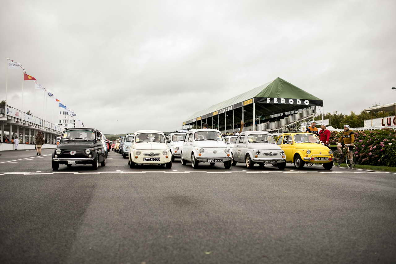 Στο Goodwood Revival είθισται κάθε χρόνο η εκδήλωση να είναι αφιερωμένη σε κάποια προσωπικότητα του motorsport ή σε κάτι διαφορετικό που άφησε ανεξίτηλο αποτύπωμα στην ιστορία της αυτοκίνησης. Φέτος λοιπόν ήταν η σειρά του Fiat 500 να δώσει το «παρών» με περισσότερα από 100 αυτοκίνητα όλων των εκδόσεων του ιστορικού mini από το Τορίνο να παρελάσουν στην πίστα. Μια παλέτα από όλα τα χρώματα με τα λιλιπούτεια 500αράκια σε κλειστή ή ανοικτή έκδοση, νορμάλ ή Abarth, Giannini, Giardiniera, αλλά και στην αυστριακή έκδοσή τους σαν Steyr Puch. Ακόμη και το πολύ σπάνιο, γιατί κατασκευάστηκαν ελάχιστα και σώζονται ακόμη λιγότερα, Vignale 500 Gamine! Ήταν ένα συγκινητικό ταξίδι στον χρόνο, τότε που η Ιταλία προσπαθούσε να ανασυγκροτηθεί μετά την καταστροφή του Β’ Παγκοσμίου Πολέμου και οι άνθρωποι του Gianni Agnelli σχεδίασαν ένα μικρό φτηνό αυτοκινητάκι για να πηγαίνουν οι Ιταλοί στις δουλειές τους χωρίς να ξεπαγιάζουν. Φυσικά και δεν γνώριζαν ότι με τη δημιουργία του 500 έγραφαν ιστορία.