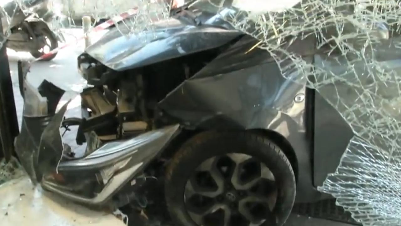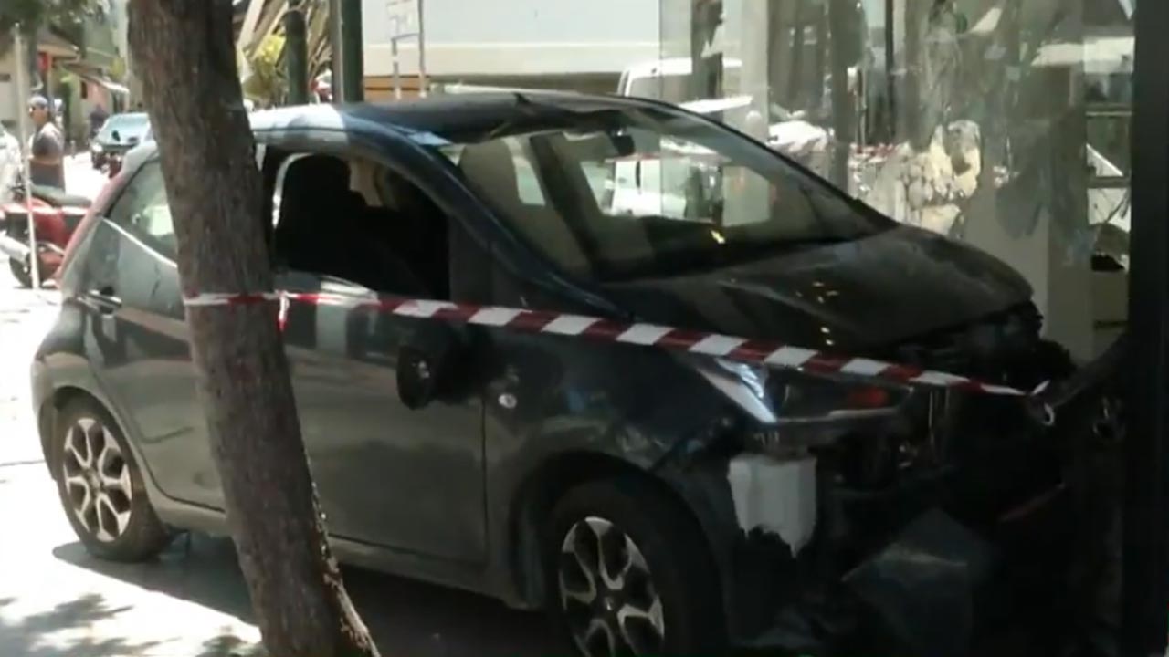 Αυτό έκανε την οδηγό να χάσει τον έλεγχο του αυτοκινήτου στιγμιαία. Έτσι, έπεσε πάνω σε κολονάκια που υπάρχουν τοποθετημένα επάνω στο πεζοδρόμιο και έπειτα σε βιτρίνα καταστήματος με παπούτσια.
