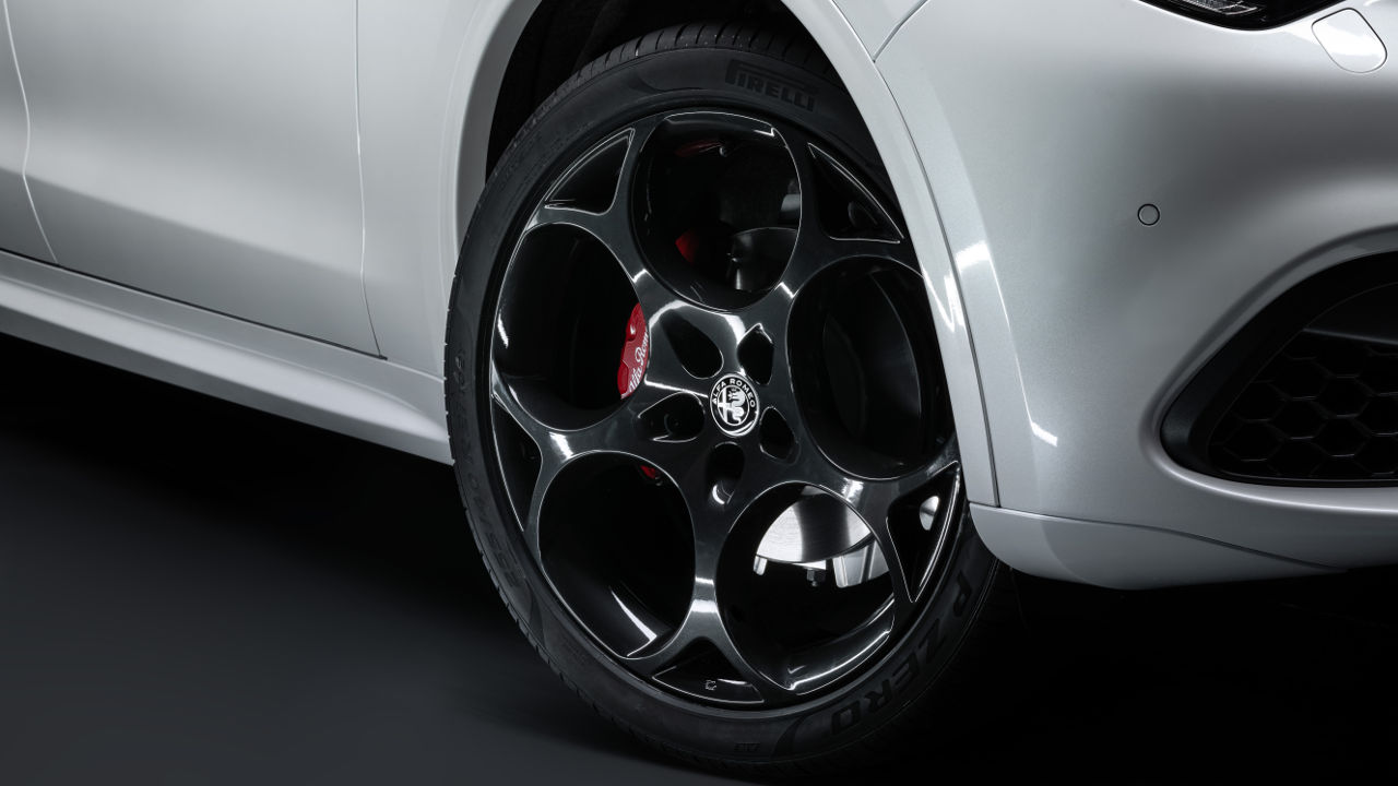 Η έκδοση Ti ξεχωρίζει από τις υπόλοιπες εκδόσεις χάρη στις νέες μαύρες ζάντες αλουμινίου των 21 ιντσών αλλά και το “γαρνίρισμα” από πραγματικά ανθρακονήματα τόσο εξωτερικά όσο και στην καμπίνα της. Εξωτερικά τα ανθρακονήματα εντοπίζονται ως καλύμματα στους καθρέπτες, ενώ πλαισιώνουν και την “καρδιά” της Alfa Romeo στη μάσκα. Ανασχεδιασμένος είναι και ο πίσω προφυλακτήρας στο κάτω μέρος του, ενώ το μαύρο χρώμιο κάνει την εμφάνιση του στις δύο μεγάλες στρογγυλές απολήξεις τις εξάτμισης αλλά και στα εξωτερικά σήματα της έκδοσης Ti.
