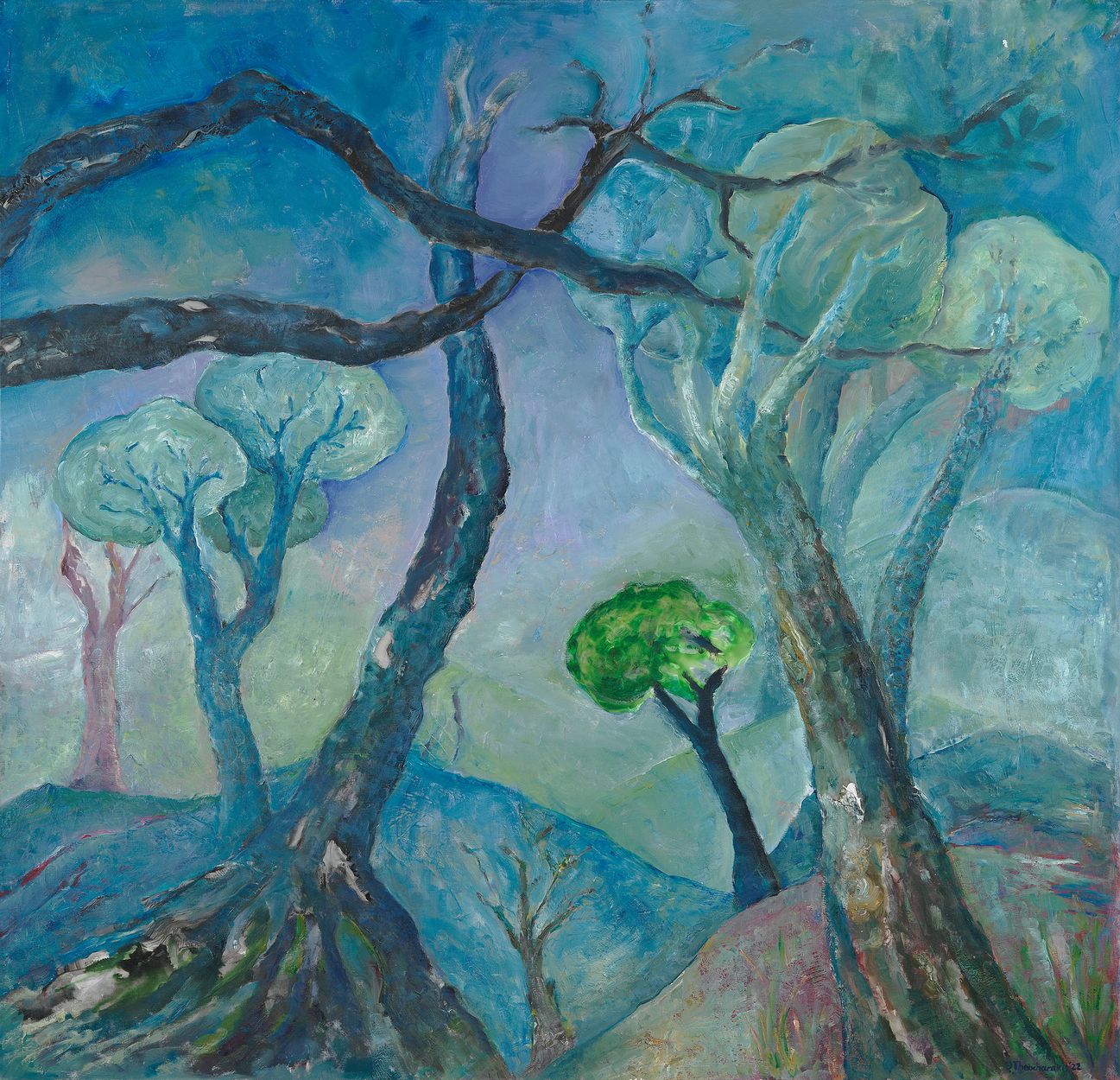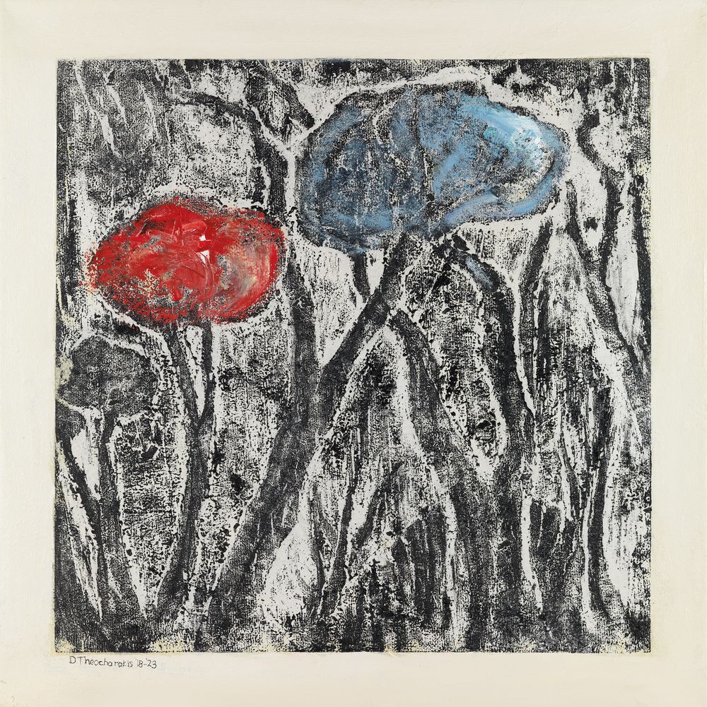 Στο επίκεντρο της νέας της καλλιτεχνικής δημιουργίας βρίσκεται η φύση, μέσα από αρχέγονα, φαντασιακά τοπία δένδρων. Τα δένδρα στην τέχνη της Ντένης Θεοχαράκη αποκτούν ανθρώπινη μορφή. Τα κλαδιά τους περιπλέκονται μεταξύ τους και αποκτούν κίνηση, γίνονται χέρια. Δένδρα με βαθιά χωμένες τις ρίζες τους στη γη που υψώνονται δυναμικά, συνδέοντας τον επίγειο με τον ουράνιο κόσμο.