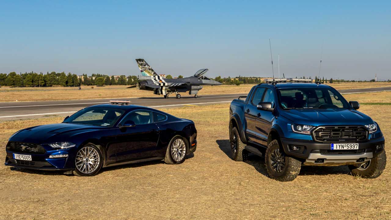 Το παρών έδωσαν και όλα τα τετράτροχα… μαχητικά μοντέλα της Ford Performance παρατεταγμένα μπροστά από τα αεροσκάφη της πολεμικής μας αεροπορίας – όπως τα Mirage 2000-5 και F-4E Phantom II.