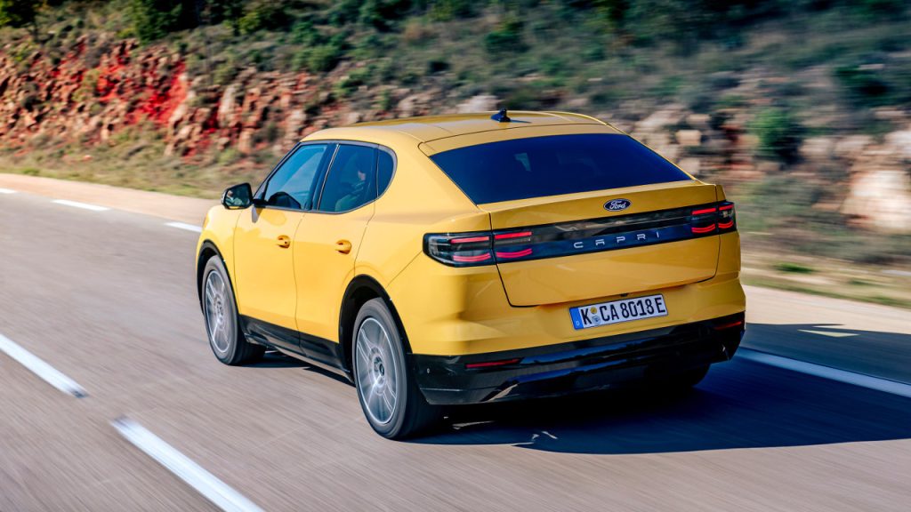 Το Ford Capri είναι ένα καινοτόμο ηλεκτρικό αυτοκίνητο που συνδυάζει την κομψή σχεδίαση και την πρακτικότητα με την οικονομία. Το νέο αμιγώς ηλεκτρικό Capri ξεχωρίζει για τις καθαρές σχεδιαστικές γραμμές του αλλά και για την ευρύχωρη καμπίνα και τον μεγάλο χώρο αποσκευών με χωρητικότητα 572 λίτρων, γεγονός που το καθιστά ιδανική επιλογή για ιδιώτες ή επαγγελματίες οδηγούς, τόσο για καθημερινές μετακινήσεις στην πόλη, όσο και για ταξίδια.