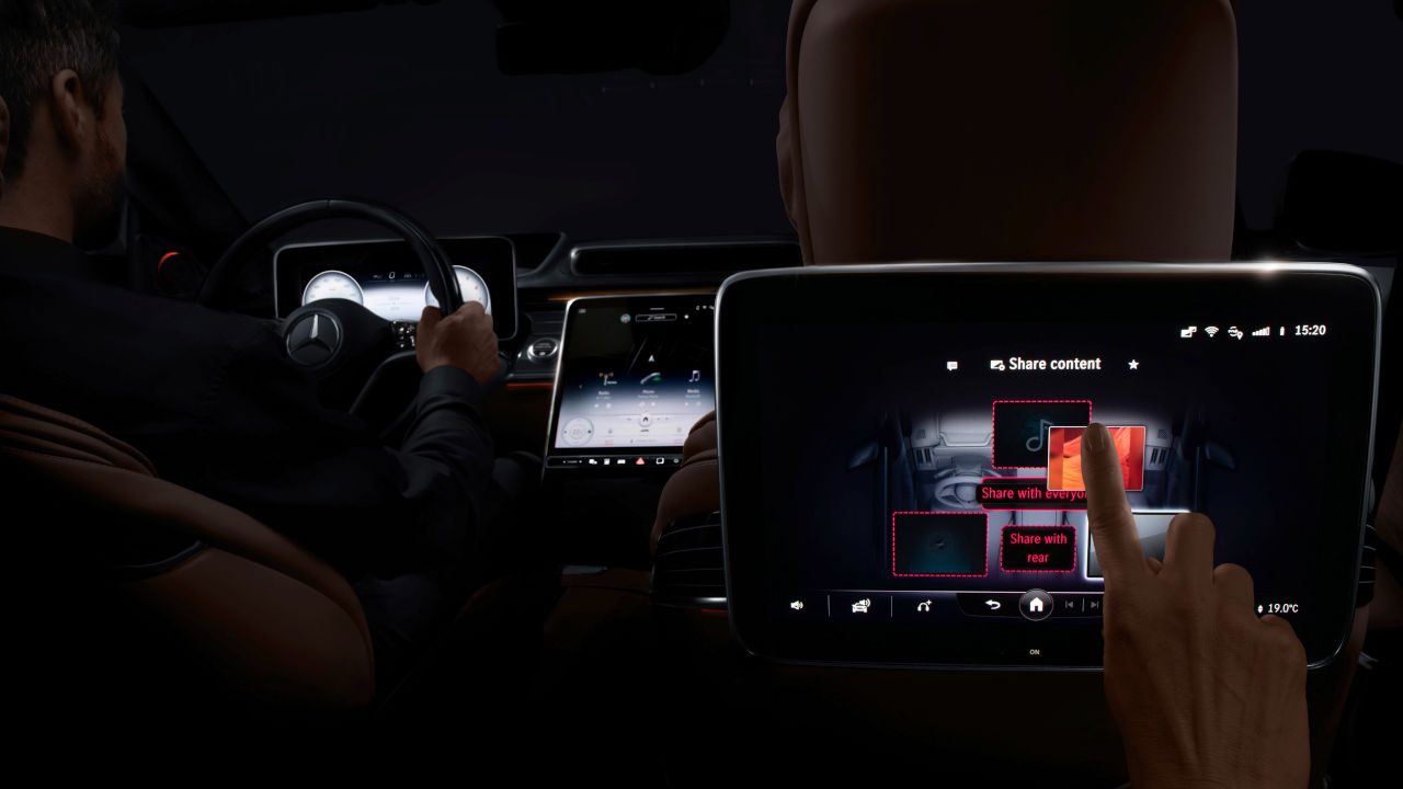 Όπως και το MBUX που γνωρίζουμε από το 2018, το έτος που έκανε για πρώτη φορά την εμφάνιση του, έτσι και το νέο είναι σε θέση να εκτελέσει διάφορες λειτουργίες δεχόμενο φωνητικές εντολές από τους επιβαίνοντες της καμπίνας, αλλά και με χερονομίες, χωρίς δηλαδή τη χρήση των οθονών αφής. Ακόμη και αν χρησιμοποιείτε τις οθόνες δεν υπάρχει πραγματικός λόγος να τις αγγίζετε αφού δέχονται εντολές από το… απομακρυσμένο δάκτυλο σας.
