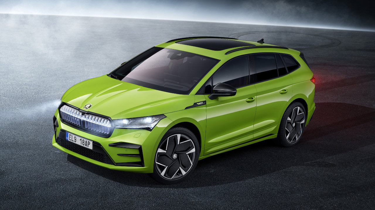 Το δεύτερο κορυφαίο ηλεκτρικό μοντέλο της Skoda είναι διαθέσιμο στο αποκλειστικό για τα RS Mamba Green χρώμα που βλέπετε στις φωτογραφίες, αλλά και σε όλα τα υπόλοιπα χρώματα της γκάμας του Enyaq.