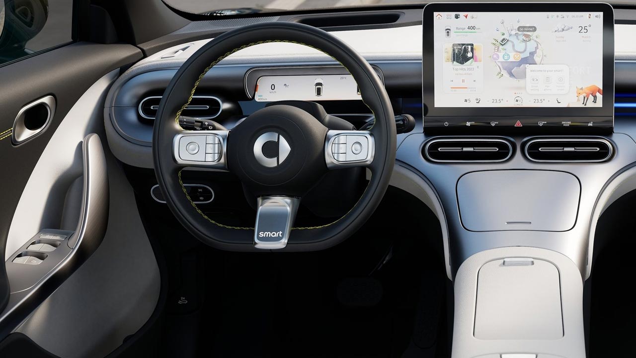 Και κάπως έτσι φτάσαμε στην ολοκαίνουργια γενιά των smart όπως αυτή εκφράζεται με τα smart #1 και smart #3. Ξεκινώντας από το smart #1, έχει μήκος 4.270 χλστ. και βασίζεται στη νέα πλατφόρμα SEA (Sustainable Experience Architecture) πάνω στην οποία χτίζονται τα smart. Διατίθεται σε δύο εκδόσεις, με 272 ή 428 ίππους και πίσω κίνηση ή τετρακίνηση, αντίστοιχα. Το #1 στη βασική του έκδοση προσφέρει μέγιστη απόδοση 200 kW με μπαταρία 49 kWh που χαρίζει 310 χλμ. αυτονομίας. Με τη μπαταρία 66 kWh, η αυτονομία αυξάνεται στα 440 χλμ. Η μπαταρία φορτίζει με εναλλασσόμενο ρεύμα AC από 10-80 % με 22 kW σε 3 ώρες, ενώ σε ταχυφορτιστή DC, αυτό μπορεί να επιτευχθεί σε λιγότερο από 30 λεπτά.