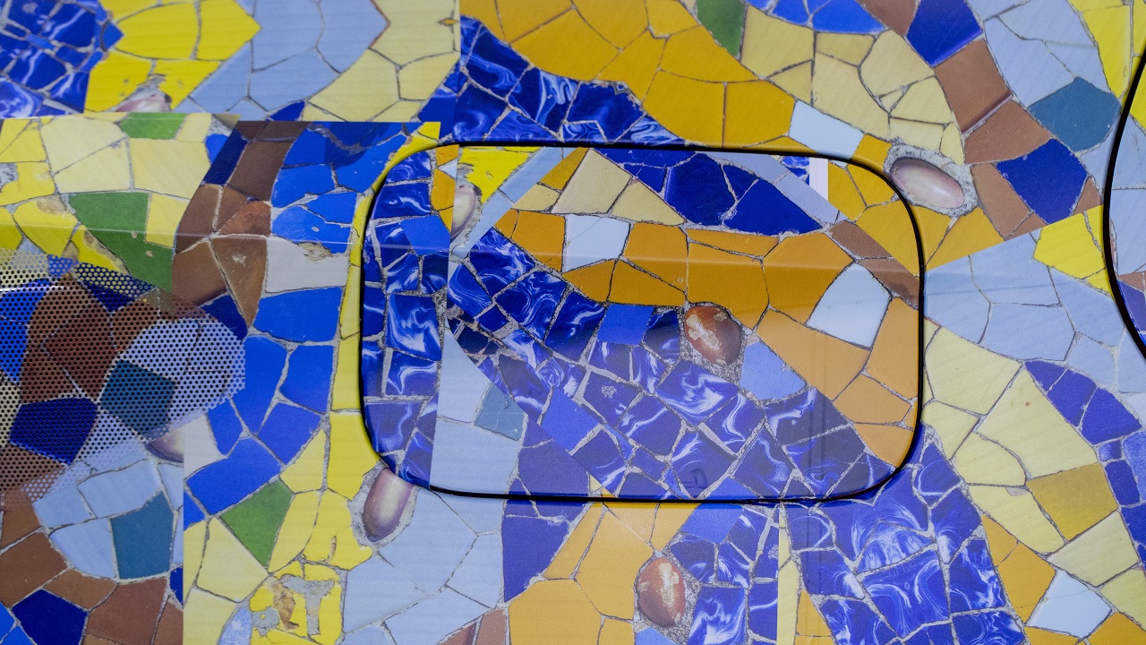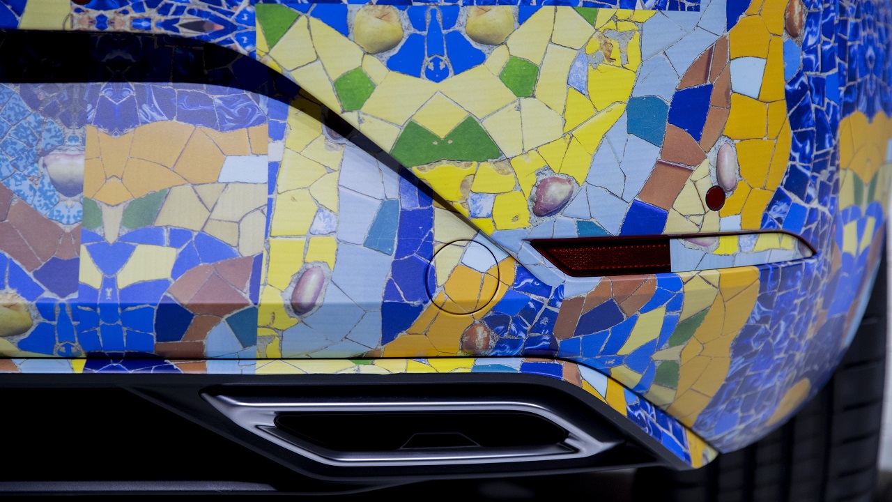 Στην περίπτωση του Seat Leon, χρησιμοποιήθηκε για πρώτη φορά διαφορετική τεχνική. Είναι το καμουφλάζ στην πιο σύγχρονη εκδοσή του με πολύχρωμα πλακίδια, γνωστά σε εμάς ως μωσαϊκό. Το αποτέλεσμα είναι να στρεβλώνεται το σχήμα και να μην είναι εφικτό να ξεχωρίσει ο θεατής τα έντονα «νεύρα».