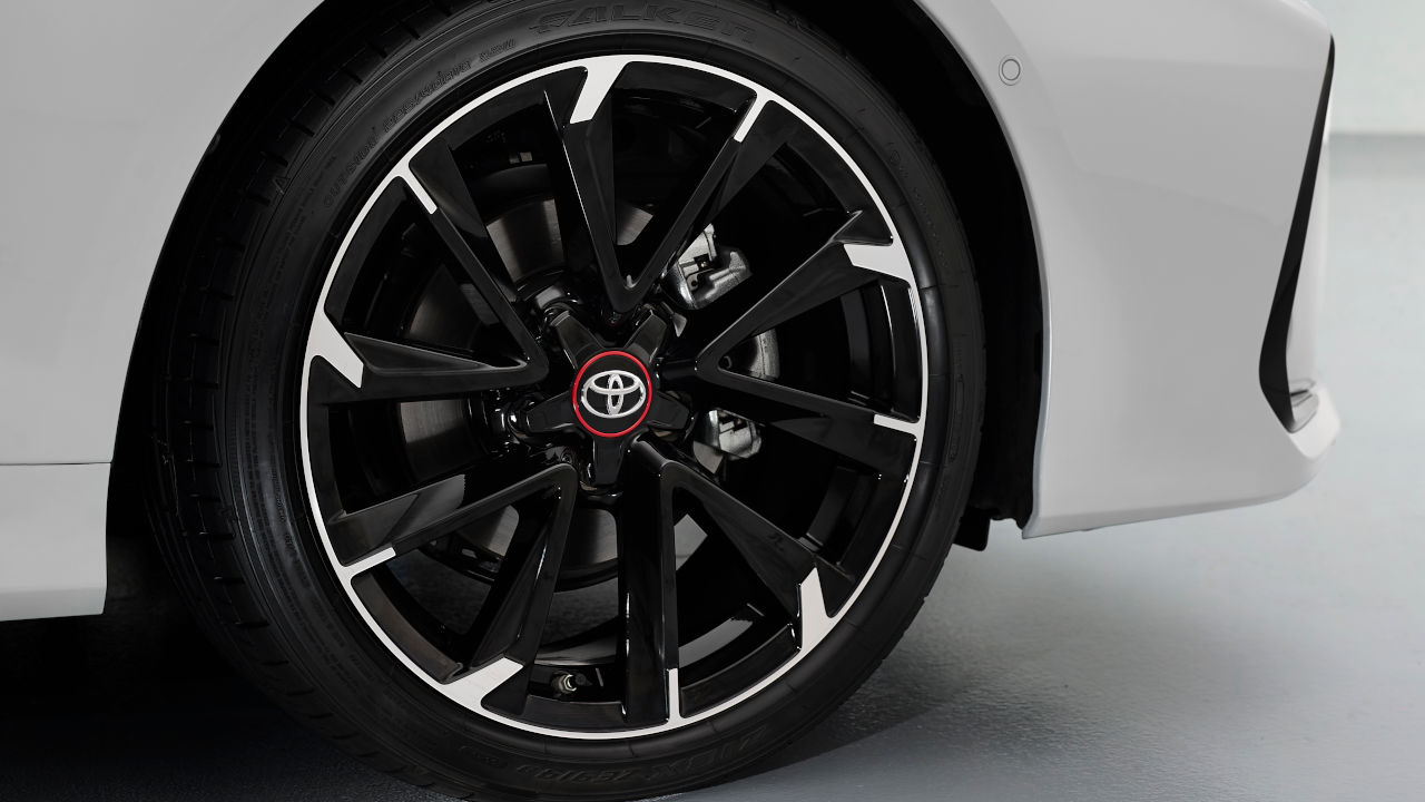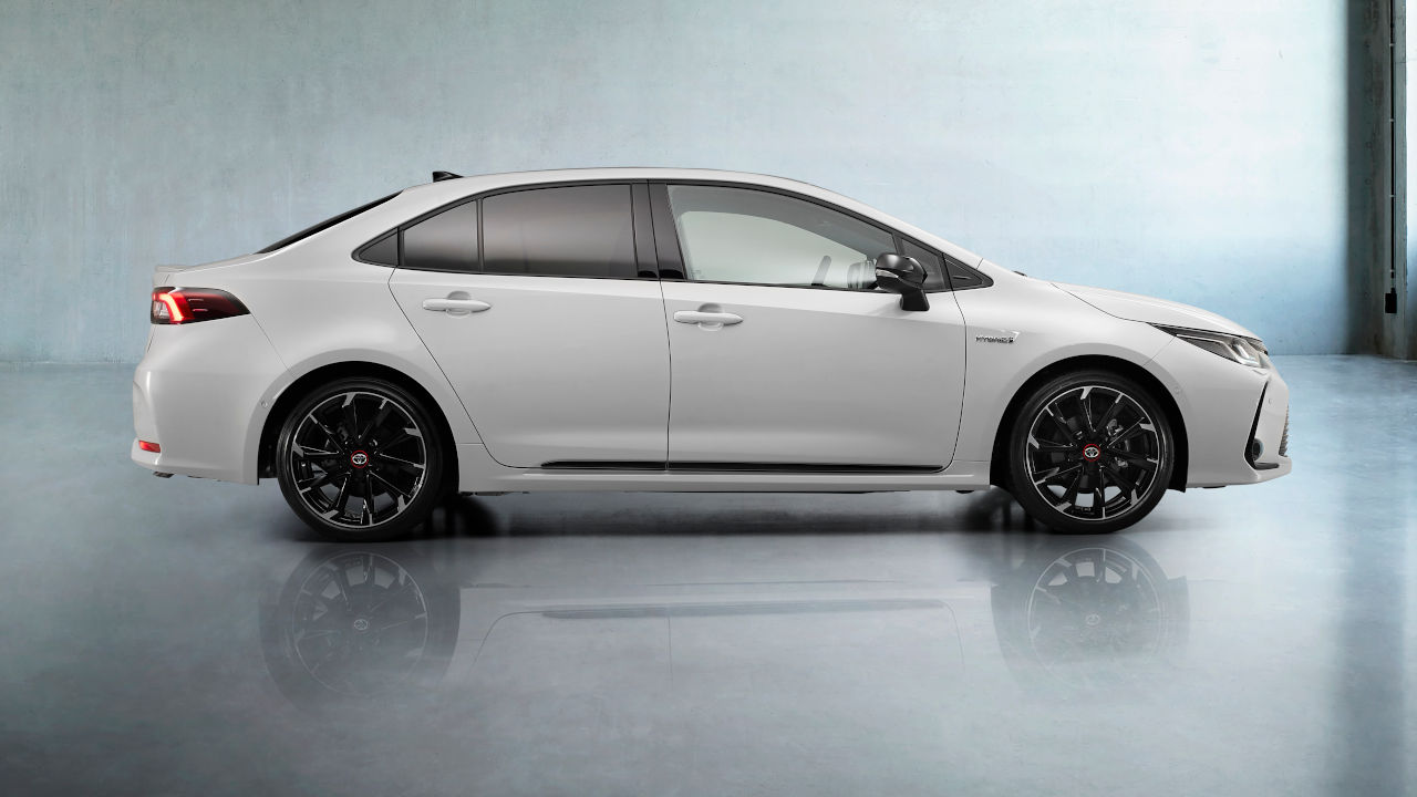 Αν και τετράθυρη, οι βελτιώσεις έγιναν από τη Gazoo Racing με στόχο να προσελκύσουν ένα πιο νεανικό κοινό. Γι αυτό το λόγο το χρώμιο έχει παραχωρήσει τη θέση σε μαύρα γυαλιστερά φιλέτα που κάνουν την εμφάνιση τους στη μάσκα της Corolla, τα καλύμματα των καθρεπτών, τις κεντρικές κολώνες του αμαξώματος, ενώ το βλέπουμε και χαμηλά στις πόρτες, αλλά και στα άκρα του εμπρός προφυλακτήρα.