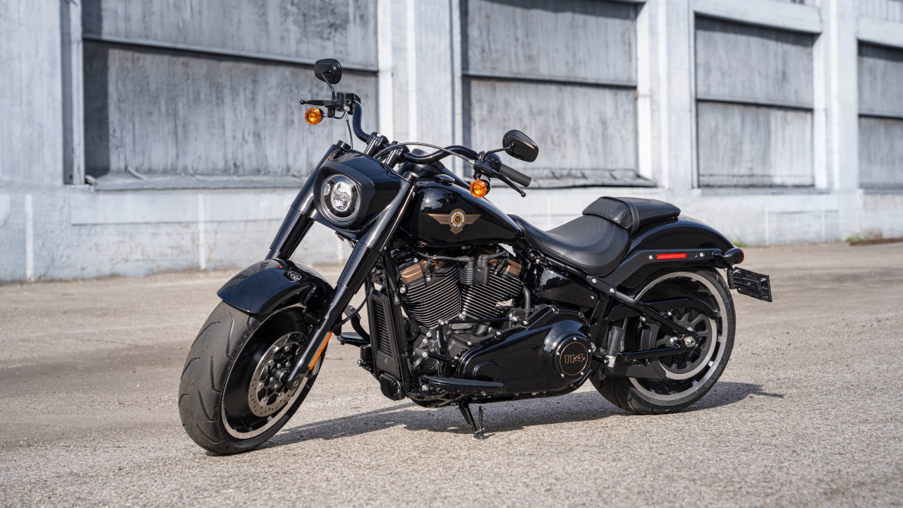 Η έκδοση για την επέτειο της Fat Boy ξεχωρίζει για τα σκούρα φινιρίσματα που συνδυάζονται με την μονοχρωμία Vivid Black. Οι αλουμινένιες ζάντες Lakester είναι σατινέ μαύρου χρώματος και διαθέτουν μηχανικά επεξεργασμένες λεπτομέρειες. Ο κατάμαυρος κινητήρας Milwaukee-Eight 114 διαθέτει μαύρα γυαλιστερά καπάκια και διακριτικά μπρονζέ χαμηλά καπάκια εκκεντροφόρου και χρονισμού βαλβίδων. Η εξάτμιση είναι χρώματος Black Onyx, το οποίο είναι ένα χρώμα που αναδεικνύει το χρώμιο σε συνθήκες έντονου φωτισμού.