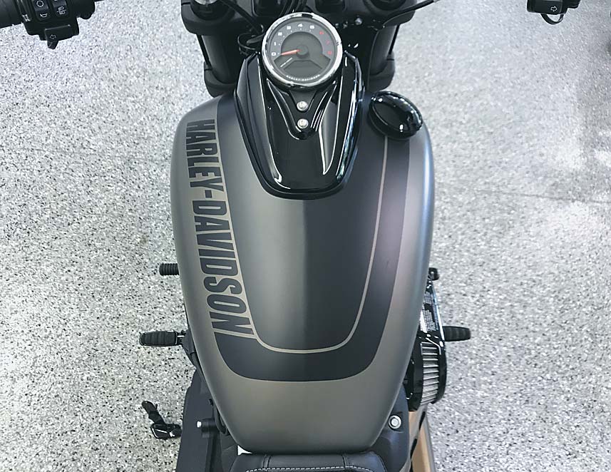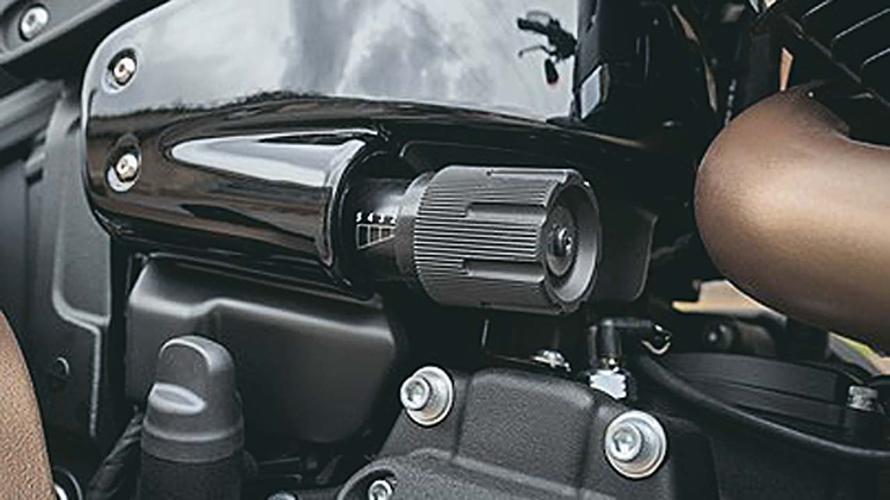 Με φαρδύ πάνω μέρος (κεφαλές) και στενότερο κάτω μέρος τονίζει τη μυώδη εμφάνιση που διατηρεί τα ωστήρια και το φίλτρο αέρα σε κοινή θέα. Το αντικραδασμικό σύστημα διατηρεί την κλασική αίσθηση Harley-Davidson επιτρέποντας ένα φάσμα κραδασμών να «δραπετεύουν» χωρίς να ενοχλούν ακόμη και σε μεγάλες διαδρομές. Ο χαρακτηριστικός «potato-potato» ήχος σε συνδυασμό με μειωμένους μηχανικούς θορύβους δεν μπορούσε να λείπει.