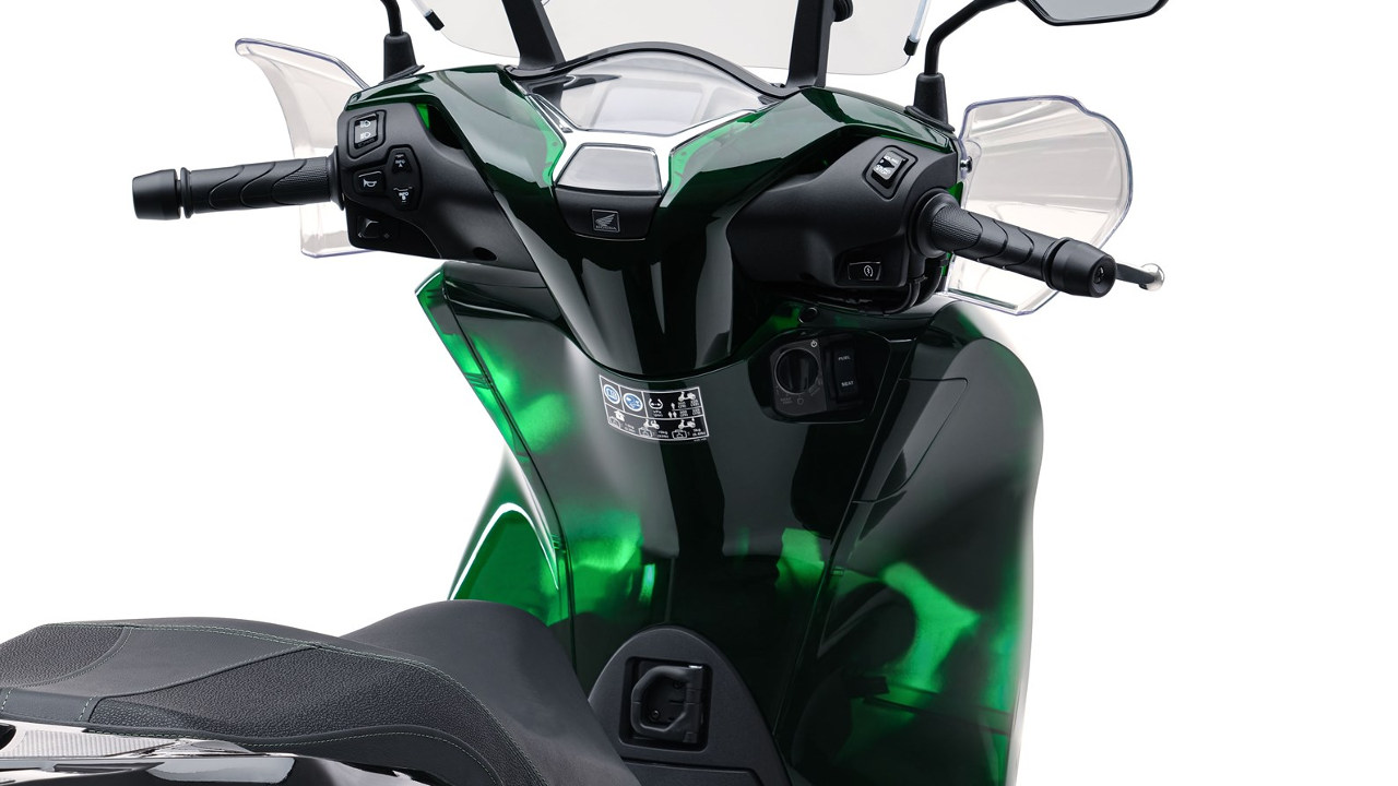 Στην καινοτόμο νέα εμφάνιση ξεχωρίζουν επίσης, το μαύρο μπροστινό φτερό, το μαύρο κάτω φέρινγκ με το τολμηρό λευκό λογότυπο της Honda και το ασημί λογότυπο SH στα πλαϊνά πλαστικά.