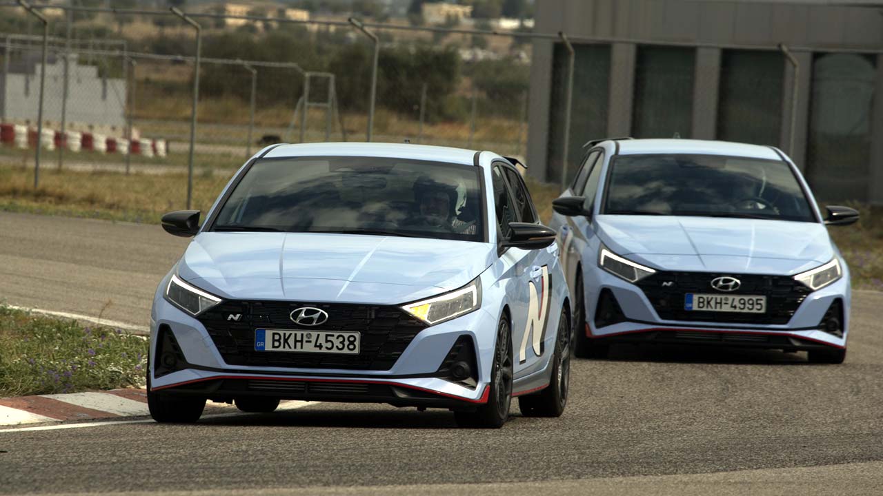 Στο ιδανικό περιβάλλον της πίστας λοιπόν και σε ιδανικές συνθήκες θερμοκρασίας και ανέμου, είχα την ευκαιρία να πάρω μια πρώτη γεύση από τα Hyunda i20 N, i 30 Ν και Kona N. Συνολικά έκανα εννέα γύρους στην πίστα, τρεις με το κάθε αυτοκίνητο. Όπως αντιλαμβάνεστε δεν είναι αρκετοί, αλλά σίγουρα ήταν μια γερή δόση “N”. Πριν αναφερθώ ειδικά για κάθε αυτοκίνητο ξεχωριστά, θα ήθελα να τονίσω το πόσο αξιόπιστα ήταν τα αυτοκίνητα της Hyundai, τα οποία γυρνούσαν όλη μέρα και με διαφορετικούς οδηγούς στην πίστα, καθώς σε τόσο απαιτητική οδήγηση η μόνη διακοπή ήταν για τα ελαστικά και τις πιέσεις τους. Πάμε όμως να δούμε τα αυτοκίνητα ένα προς ένα.