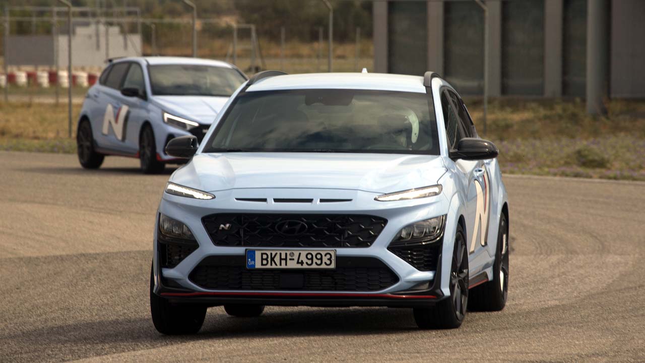 Η κορυφαία έκδοση του SUV της Hyundai εφοδιάζεται με Φυσικά το Hyundai Kona N διαφέρει εξωτερικά από τις… κοινές θνητές εκδόσεις του αισθητικά. Και αυτό γιατί διαθέτει ανασχδειασμένους προφυλακτήρες, κόκκινες λεπτομέρειες, αεροτομή οροφής, αεροδυναμικό διαχύτη πίσω, δύο απολήξεις εξάτμισης και σκουρόχρωμες ζάντες 19 ιντσών, κόκκινες δαγκάνες φρένων και φυσικά τα σχετικά λογότυπα N. Σε αυτό το σημείο να πούμε πως το Hyundai Kona N ζυγίζει 1.510 κιλά. Στο εσωτερικό συναντάμε το τιμόνι N της Hyundai με τους ειδικούς διακόπτες για την επιλογή οδηγικού προγράμματος, ο επιλογέας του κιβωτίου είναι και αυτός N, ενώ τα καθίσματα είναι μπάκετ. Είναι εξοπλισμένο με ένα νέο σύστημα πολυμέσων 10,25 ιντσών και ψηφιακό πίνακα οργάνων επίσης 10,25 ιντσών. Διαθέτει μια αποκλειστική οθόνη head-up racing (HUD) που προσθέτει μια νέα διάσταση, όπως ένα παιχνίδι μέσα από τις συναρπαστικές λειτουργίες N ή Sport. Ο νέος σχεδιασμός «N mode» του συστήματος πολυμέσων που προσφέρει μια gaming εμπειρία με ψηφιοποιημένα στοιχεία, παρέχει διάφορες πληροφορίες όπως ο χρόνος γύρου και οι χάρτες N track που βοηθούν στις καλύτερες «γραμμές» στις πίστες μαζί με άλλες πληροφορίες. Επιπρόσθετα, το KONA N μεγιστοποιεί την οδηγική απόλαυση χρησιμοποιώντας διάφορα εύχρηστα και ευανάγνωστα widget που προσφέρουν ενημέρωση και οδηγικές πληροφορίες σε πραγματικό χρόνο. Στην πίστα, που μπορεί να μην είναι και το… φυσικό περιβάλλον ενός SUV, το Kona N με εξέπληξε ευχάριστα. Όχι μόνο μπορούσε να κρύψει με μαεστρία τον SUV χαρακτήρα του παραπέμποντας σε hot hatch, αλλά μπορούσε και να βρίσκεται κοντά στο i30 N. Θα έλεγα πως οι μηχανικοί της Hyundai έχουν κάνει εξαιρετική δουλειά και σε αυτό το μοντέλο που ίσως ήταν η μεγαλύτερη έκπληξη της ημέρας για εμένα.