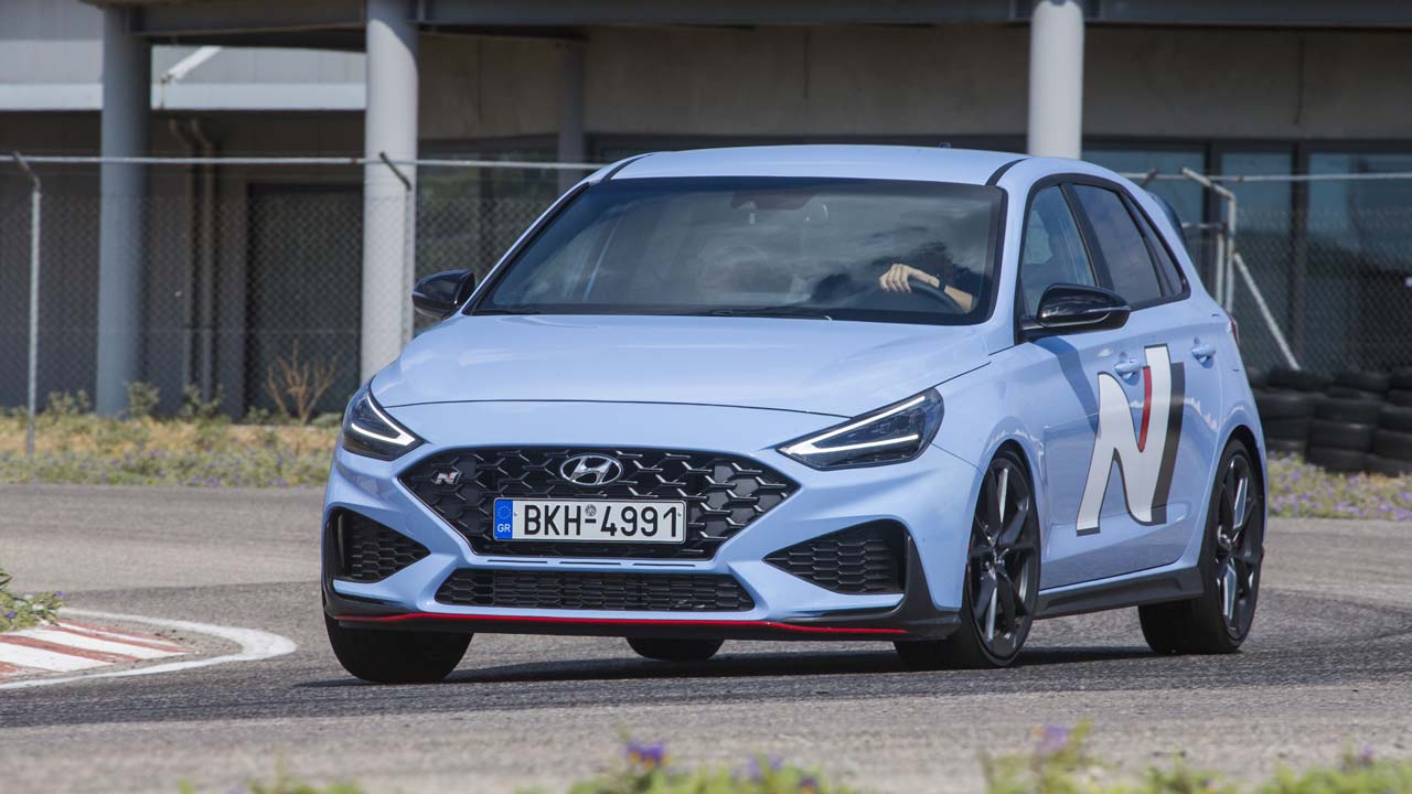 Το ανανεωμένο Hyundai i30 N φέρει αρκετές αλλαγές που είχαν σαν στόχο τη βελτίωση του “αρχικού πακέτου” στους τομείς της απόδοσης, της τεχνολογίας αλλά και της εμφάνισης με τους Κορεάτες να αναφέρουν πως πλέον έχουμε να κάνουμε με ένα πραγματικό, καθημερινό σπορ αυτοκίνητο που μπορεί να πάρει μέρος και σε track days. Το δίλιτρο τούρμπο μοτέρ εξακολουθεί να δίνει το “παρών” κάτω από το καπό και αποδίδει στη στάνταρ μορφή του 250 ίππους και 353 Nm ροπής στις 5.200 και 1.950-4.600 σ.α.λ. αντίστοιχα. Με την προσθήκη του πακέτου Performance η ισχύς ανεβαίνει στους 280 ίππους (στους +5 έναντι του προηγούμενου) ενώ αύξηση έχουμε και στην τιμή της μέγιστης ροπής που φτάνει στα 392 Nm. Με την προσθήκη του πακέτου τα 0-100 χλμ./ώρα επιτυγχάνονται σε 5,9 δευτερόλεπτα, ενώ η τελική και στις δύο περιπτώσεις ανέρχεται στα 250 χλμ./ώρα. Τα μεγαλύτερα ίσως νέα για το ανανεωμένο Hyundai i30 N έχουν να κάνουν με τη διαθεσιμότητα του, για πρώτη φορά και με ένα νέο αυτόματο κιβώτιο διπλού συμπλέκτη υγρού τύπου, το οποίο έχει 8 ταχύτητες και δίνει στον οδηγό τη δυνατότητα και για χειροκίνητες αλλαγές ενσωματώνοντας “αυτάκια” πίσω από το τιμόνι ή από τον επιλογέα του -ανεβάσματα προς τα πίσω, κατεβάσματα προς τα μπροστά. Η επιλογή του N DCT κιβωτίου έναντι του στάνταρ χειροκίνητου κιβωτίου των έξι σχέσεων κάνει την οδήγηση του i30 N ακόμη πιο διασκεδαστική σύμφωνα με τους Κορεάτες και λιγότερο… απαιτητική θα πρόσθετα εγώ. Μπορείς να κινηθείς με λιγότερη προσπάθεια το ίδιο ή και πιο γρήγορα από ότι με το χειροκίνητο κιβώτιο ταχυτήτων. Πραγματικά οι Κορεάτες έχουν κάνει εξαιρετική δουλειά με το κιβώτιο διπλού συμπλέκτη, το οποίο καταφέρνει να πραγματοποιεί ακαριαίες αλλαγές και να σε κάνει να νιώθεις ή και να είσαι ακόμη πιο γρήγορος στην πίστα, χωρίς την ανάλογη οδηγική προσπάθεια. Στη λειτουργία N Grin Shift ο κινητήρας απελευθερώνει πλήρως την ισχύ του για 20 δευτερόλεπτα. Η N Power Shift ενεργοποιείται όταν πατάτε το πεντάλ του γκαζιού περισσότερο από το 90% της διαδρομής του και εξαλείφει την οποιαδήποτε μείωση της παρεχόμενης ροπής στα συνεχόμενα ανεβάσματα. Στη λειτουργία N Track Sense Shift, τα ηλεκτρονικά συστήματα του i30 N αναγνωρίζουν επίσης αυτόματα πότε οι συνθήκες είναι ιδανικές για δυναμική οδήγηση και επιλέγει πάντα τη σωστή σχέση στο κιβώτιο αλλά και τη σωστή στιγμή για την επόμενη αλλαγή. Όπως και με το υπάρχον μοντέλο έτσι και με το ανανεωμένο το ηλεκτρονικό σύστημα N Grin Control δίνει τη δυνατότητα στον οδηγό του i30 N να επιλέξει μεταξύ πέντε διαφορετικών προγραμμάτων οδήγησης: των Eco, Normal, Sport, N και N Custom, όπου στο τελευταίο μπορείτε να επιλέξετε τις δικές σας ρυθμίσεις.