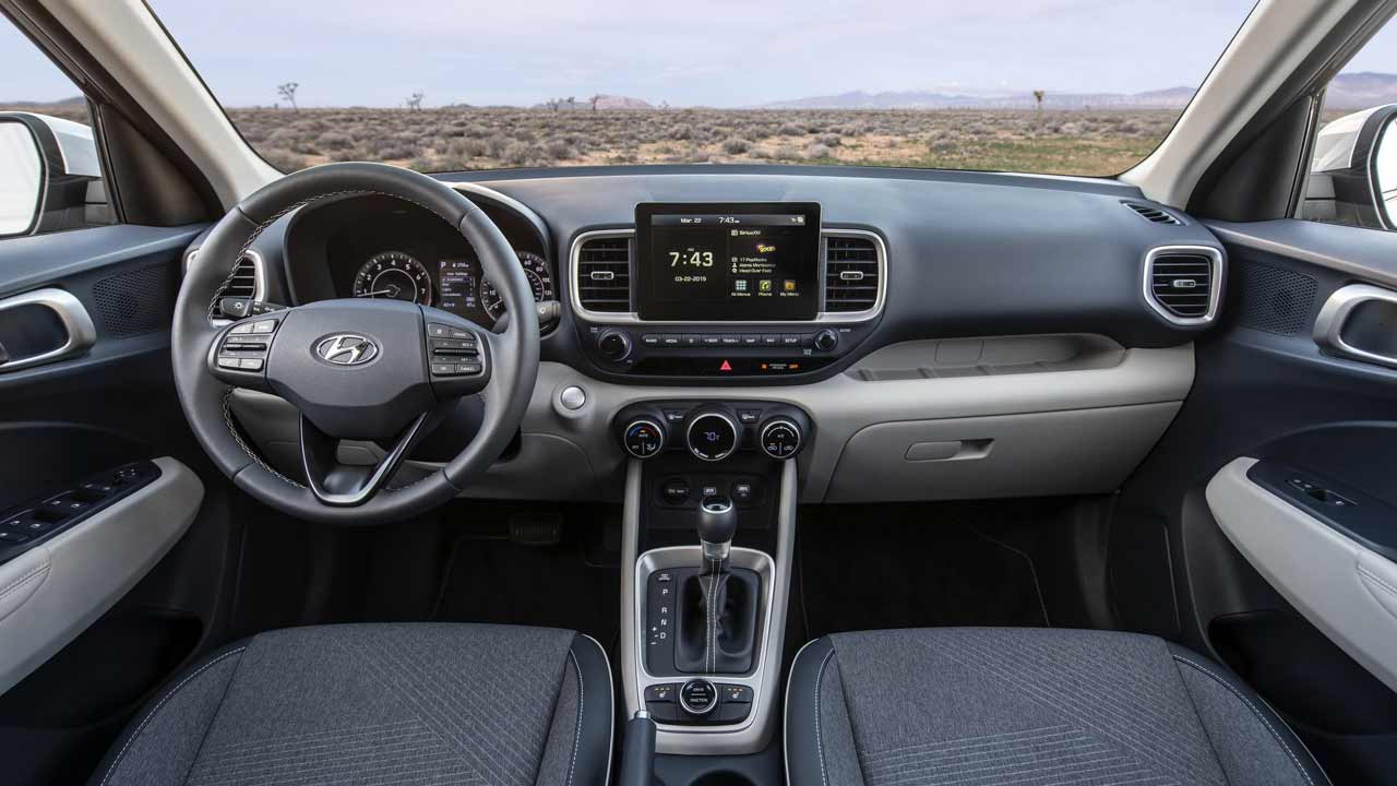 Στο εσωτερικό, από την άλλη οι σχεδιαστικοί τόνοι κρατήθηκαν χαμηλά. “Ήσυχες” γραμμές, ουδέτερα χρώματα και αρκετές θήκες για μικροαντικείμενα (υπάρχει ακόμη και ράφι πάνω από το ντουλαπάκι του συνοδηγού) συνθέτουν την εικόνα στην καμπίνα. Ο πίνακας οργάνων είναι αναλογικός και ανάμεσα από τα κυκλικά του όργανα έχει μία ψηφιακή οθόνη 3.5 ιντσών για τις ενδείξεις του υπολογιστή ταξιδιού. Το σύστημα πολυμέσων του Venue συνοδεύεται από οθόνη αφής 8 ιντσών, ενώ ο εξοπλισμός του περιλαμβάνει όλα τα σύγχρονα συστήματα άνεσης και ασφάλειας.