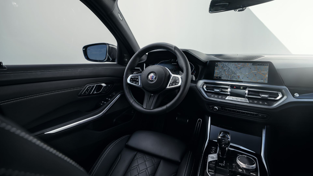 Η καμπίνα του αυτοκινήτου έχει δεχτεί επίσης τις περιποιήσεις των ανθρώπων της Alpina. Το σήμα της εταιρίας κάνει την εμφάνιση του στην πλάτη των καθισμάτων με τις νέες χαρακτηριστικές και χειροποίητες δερμάτινες επενδύσεις “Lavalina”. Σε μεταλλική μορφή το βλέπουμε επίσης και στα νέα πατάκια με τη γερμανική εταιρία βελτιώσεων να έχει τοποθετήσει μεταλλικά ένθετα και στα μαρσπιέ.