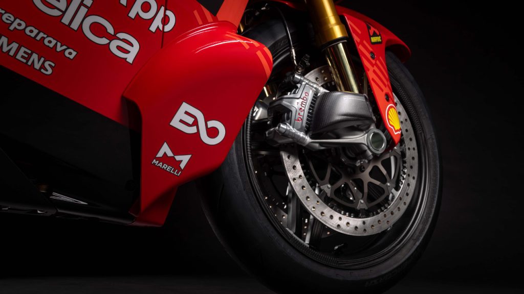 Η superbike έχει επίσης το κορυφαίο σύστημα πέδησης Front Brake Pro+ της Brembo που είναι νόμιμο για χρήση στον δρόμο και αποτελείται από δίσκους T-Driv 338,5 χλστ. και GP4 Sport Production μονομπλόκ δαγκάνες τεσσάρων εμβόλων. Πάνω σε αυτό βασίζονται και τα φρένα των μοτοσυκλετών της που αγωνίζονται στο Παγκόσμιο Πρωτάθλημα Superbike. Για την περίσταση ο συμπλέκτης είναι ξηρός, τα μαρσπιέ είναι κατασκευασμένα από billet αλουμίνιο και ρυθμίζονται και το αλουμινένιο καπάκι του ρεζερβουάρ είναι αγωνιστικών προδιαγραφών. Κορυφαίες είναι και οι πολυρυθμιζόμενες αναρτήσεις που προέρχονται από την Ohlins με το βάρος της μοτοσυκλέτας, χωρίς καύσιμο, να ανακοινώνεται στα μόλις 186,5 κιλά.