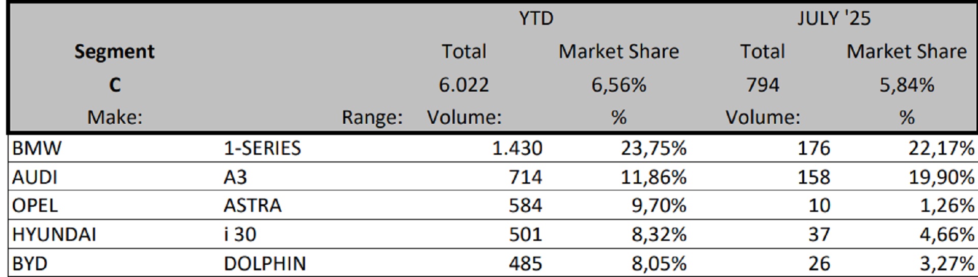 Η τριάδα ολοκληρώνεται με το Opel Astra των 584 ταξινομήσεων, ενώ πίσω του ακολουθεί το Hyundai i30 των 501 ταξινομήσεων. Το Top-5 των μικρομεσαίων οικογενειακών ολοκληρώνεται με το best seller ηλεκτρικό της ελληνικής αγοράς. Ασφαλώς, αναφερόμαστε στο BYD Dolphin με τις 485 ταξινομήσεις.