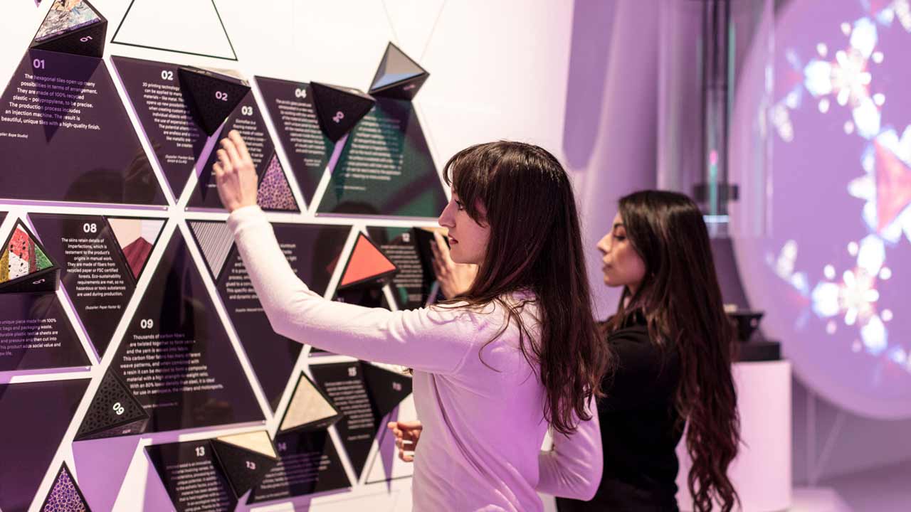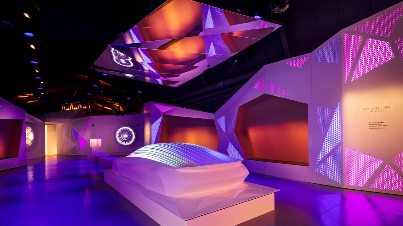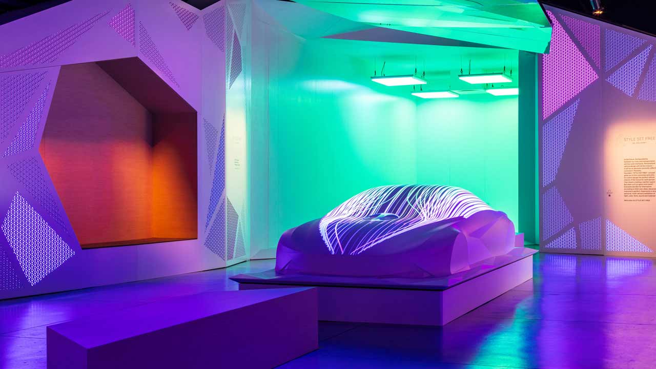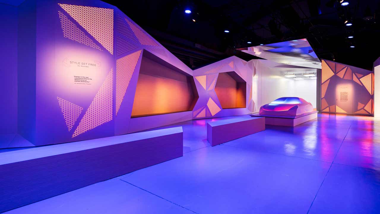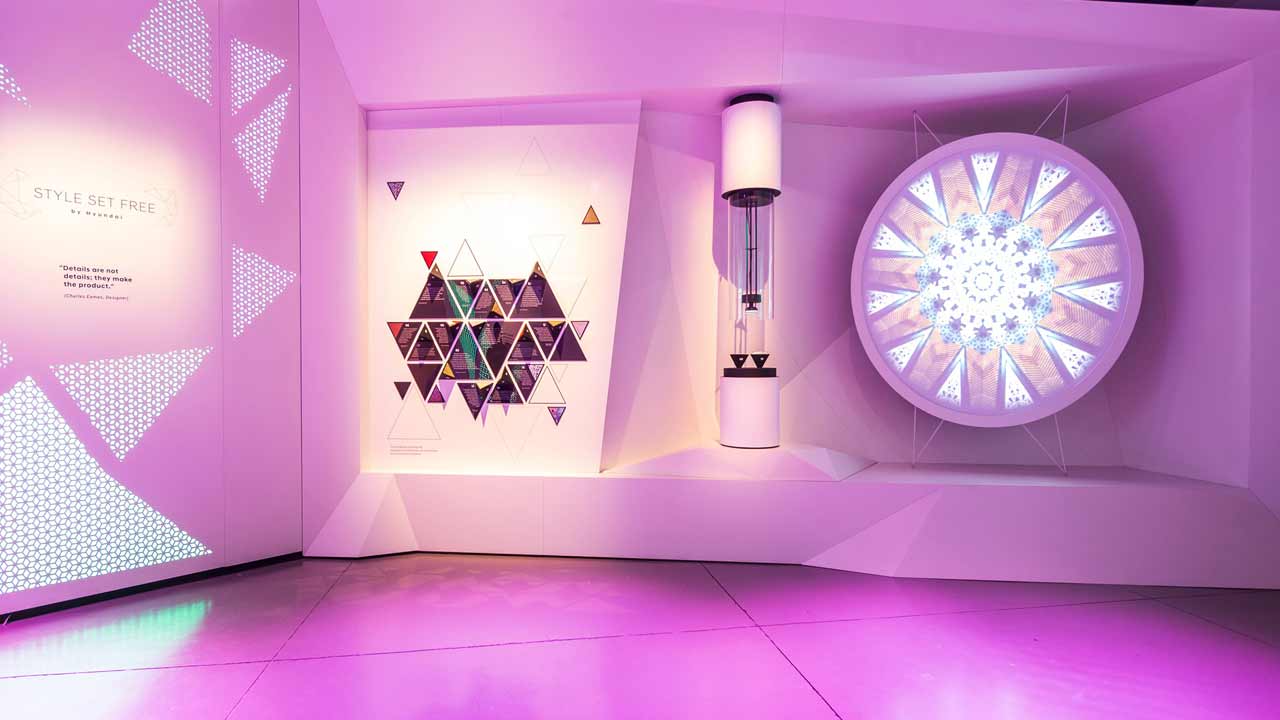 Στο επίκεντρο της έκθεσης είναι η “Γλυπτική”, μια αρμονική ερμηνεία του “STYLE SET FREE”. Τα τρία βασικά εσωτερικά στοιχεία της νέας εμπειρίας της μάρκας Hyundai είναι τα ακόλουθα : Χρώμα & Φως, Υλικό και Σχήμα & Ήχος. Κάθε ένα από αυτά τα στοιχεία αναδεικνύεται με υψηλής ποιότητας ψηφιακά animated γραφικά καθώς και μια σειρά από διαδραστικές ενέργειες.