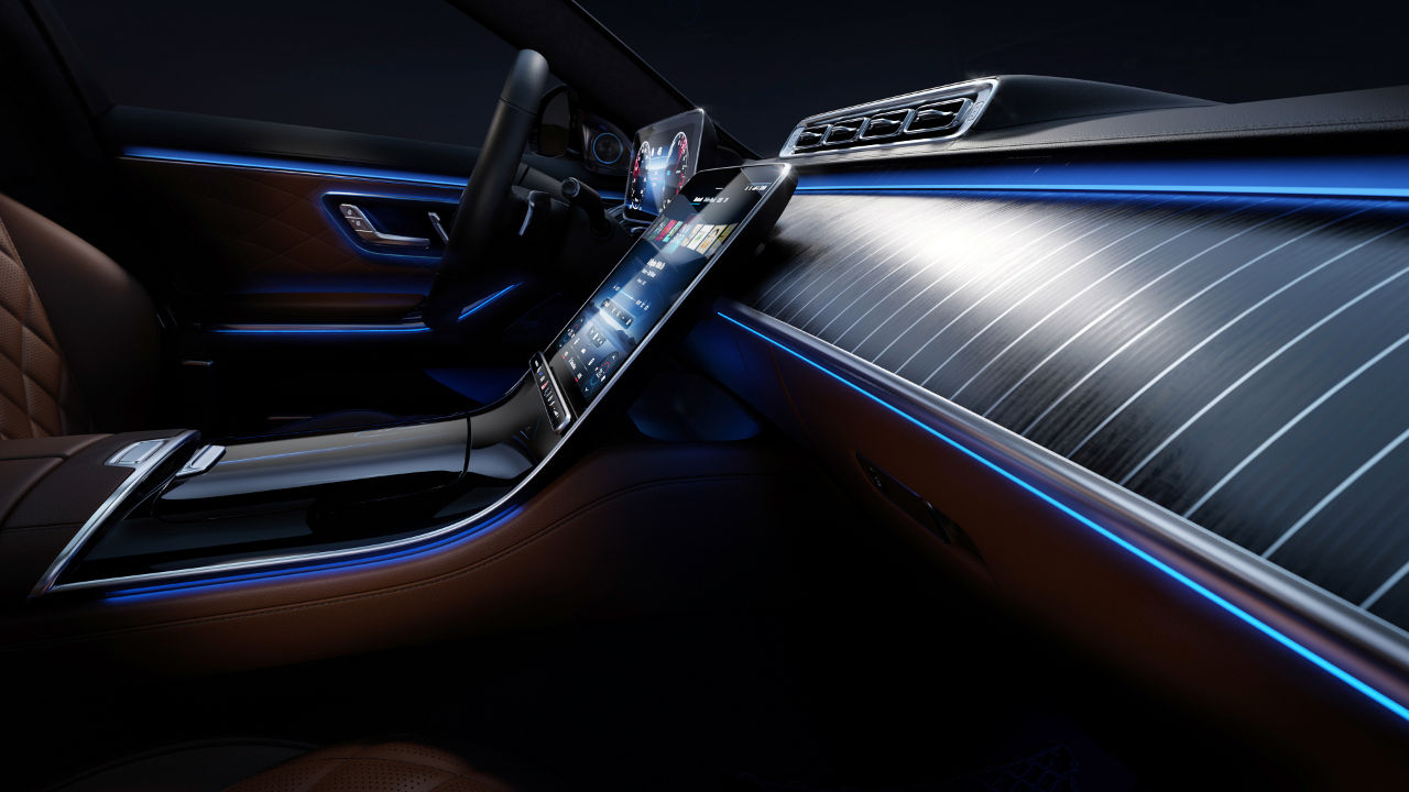 -Στην S-Class έχουν ενσωματωθεί καινοτομίες, όπως ο ενεργός ατμοσφαιρικός φωτισμός, μεγάλες οθόνες και νέο περιεχόμενο με κινούμενες εικόνες υψηλής ανάλυσης