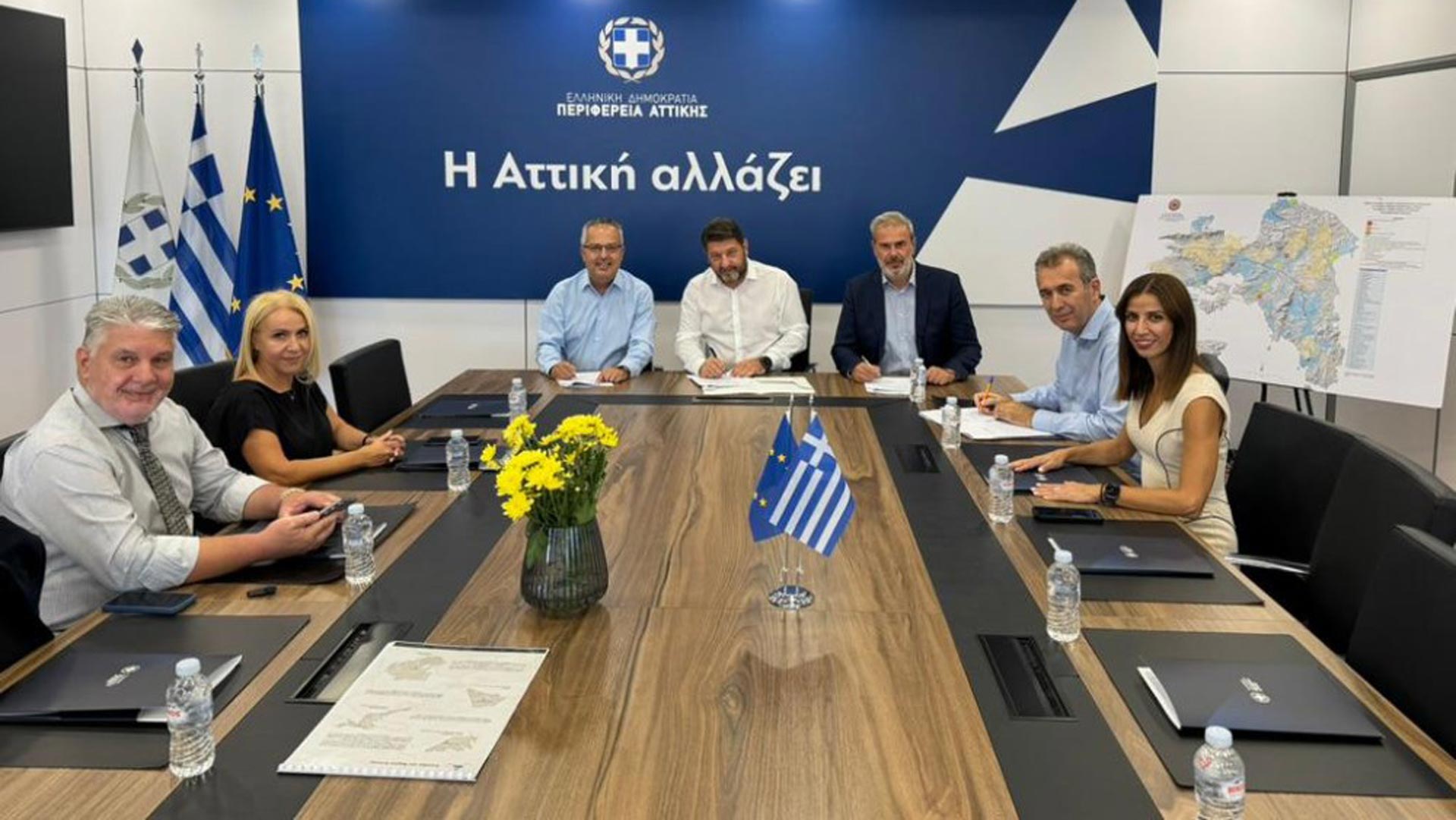 Σύμβαση αφορά στη βιοκλιματική ανάπλαση του παράδρομου της Λεωφόρου Μεσογείων στα όρια του Δήμου Παπάγου – Χολαργού, ένα έργο που φιλοδοξεί να αλλάξει ριζικά την εικόνα της περιοχής διευκολύνοντας την ασφαλή και απρόσκοπτη μετακίνηση των πεζών, υπέγραψε ο Περιφερειάρχης Αττικής Νίκος Χαρδαλιάς με τον Δήμαρχο Παπάγου – Χολαργού Ηλία Αποστολόπουλο, τον Πρόεδρο της «Νέας Μητροπολιτικής Αττικής Α.Ε.» Δημήτρη Φραγκάκη και τον Διευθύνοντα Σύμβουλο του Οργανισμού, Γιώργο Κορμά.