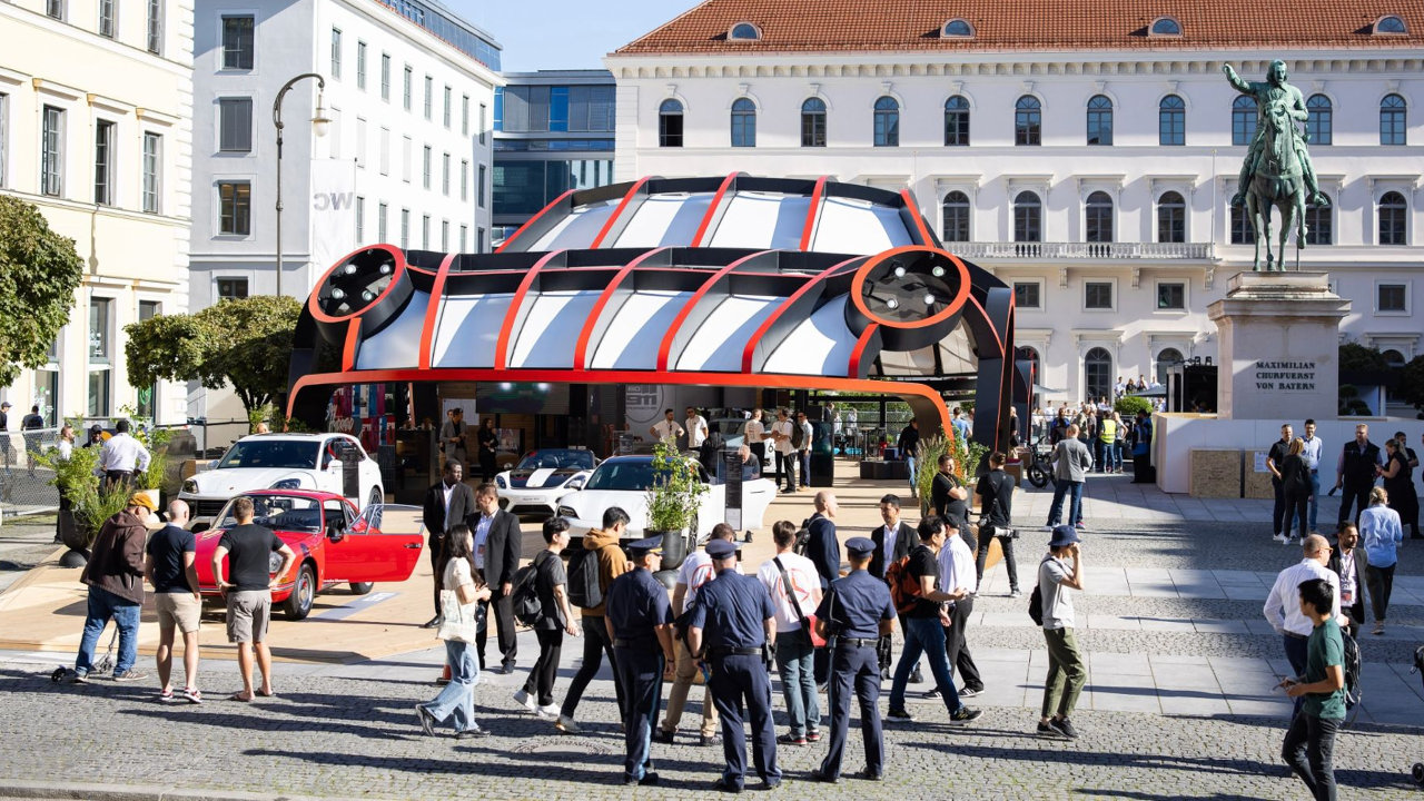 Η γιγαντιαίων διαστάσεων Porsche 911 επέβαλε την παρουσία της στους επισκέπτες στις εξωτερικές εγκαταστάσεις τις Έκθεσης Αυτοκινήτου του Μονάχου προσκαλώντας τους να εξερευνήσουν τα μοντέλα της γερμανικής εταιρείας.
