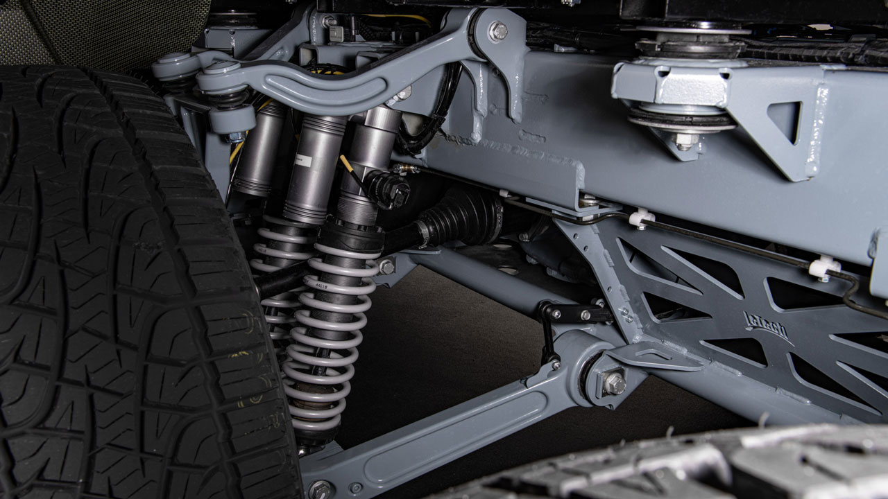 Πάμε και στα μηχανικά μέρη, με το BRABUS XLP 900 6×6 Superblack να εξοπλίζεται με έναν V8 κινητήρα χωρητικότητας 4,5 λίτρων. Συνοδευόμενος από δύο turbo είναι σε θέση να αποδίδει 900 ίππους και τεράστια ροπή 1.250 Nm. Ενδεικτικά, τα 0-100 χλμ./ώρα έρχονται σε μόλις 5,8 δλ. και η τελική ταχύτητα περιορίζεται ηλεκτρονικά στα 210 χλμ./ώρα. Για όσους βρίσκουν υπερβολικές αυτές τις τιμές, υπάρχει και μία δεύτερη έκδοση XLP 800 6×6 με ισχύ 800 ίππων και 1.000 Nm ροπής.