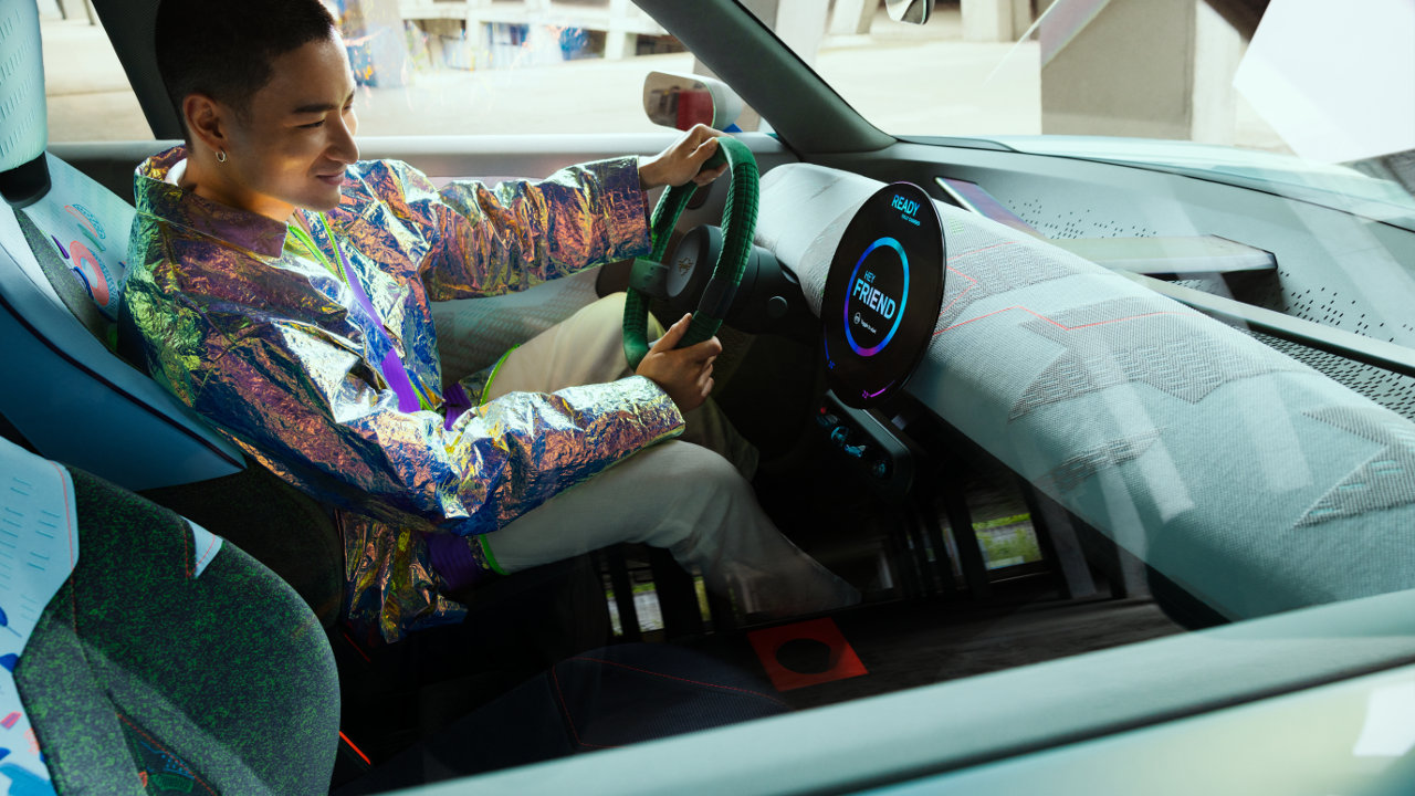 Τα στοιχεία χρωμίου καταργούνται εντελώς – όχι μόνο στο εξωτερικό του MINI Concept Aceman, αλλά και στην καμπίνα. Το τιμόνι του Aceman, όπως τα καθίσματα, τα πάνελ θυρών και όλες οι υπόλοιπες επιφάνειες εσωτερικού δεν φέρουν δερμάτινα στοιχεία και νέα βιώσιμα υλικά προσπαθουν να προσθέσουν την αίσθηση πολυτέλειας στο εσωτερικό τους.