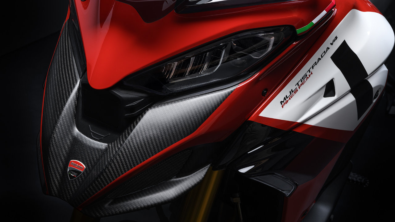 Τα δύο στοιχεία που προσδιορίζουν κυρίως την έκδοση Pikes Peak από αισθητική και λειτουργική άποψη, είναι ο μπροστινός τροχός 17 ιντσών και το μονόμπρατσο ψαλίδι. Η εικόνα ενισχύεται από τα γραφικά “Pikes Peak”, εμπνευσμένα πιστά τόσο στα χρώματα όσο και στο σχέδιο από αυτή της Desmosedici GP ’21 που συμμετέχει στο Παγκόσμιο Πρωτάθλημα MotoGP. Ακόμη και τα special καπάκια και στις δύο πλευρές του ρεζερβουάρ συμβάλλουν στην ανάδειξη της βαθιάς σχέσης με τον κόσμο των αγώνων.