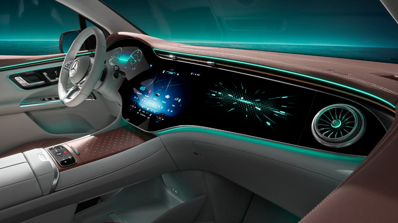 Στο εσωτερικό η οθόνη και το λειτουργικό σύστημα του MBUX παρέχουν εξατομικευμένες προτάσεις για διάφορες λειτουργίες οχήματος, infotainment και άνεσης. Κορυφαίο χαρακτηριστικό η οθόνη MBUX Hyperscreen με σχεδιασμό zero-layer που δεν απαιτεί από τον χρήστη να κάνει κύλιση στα διάφορα υπομενού ούτε να δίνει φωνητικές εντολές.