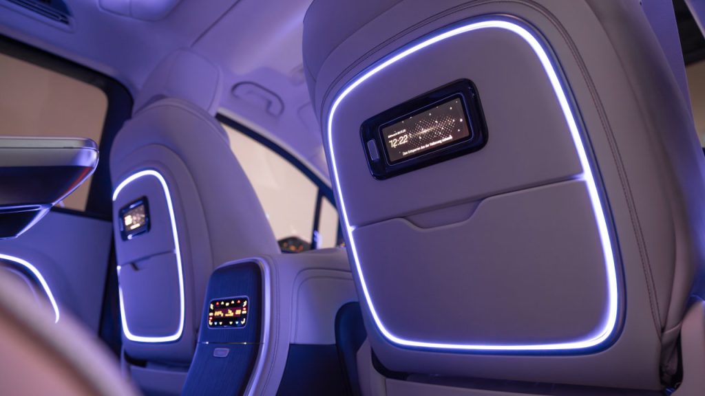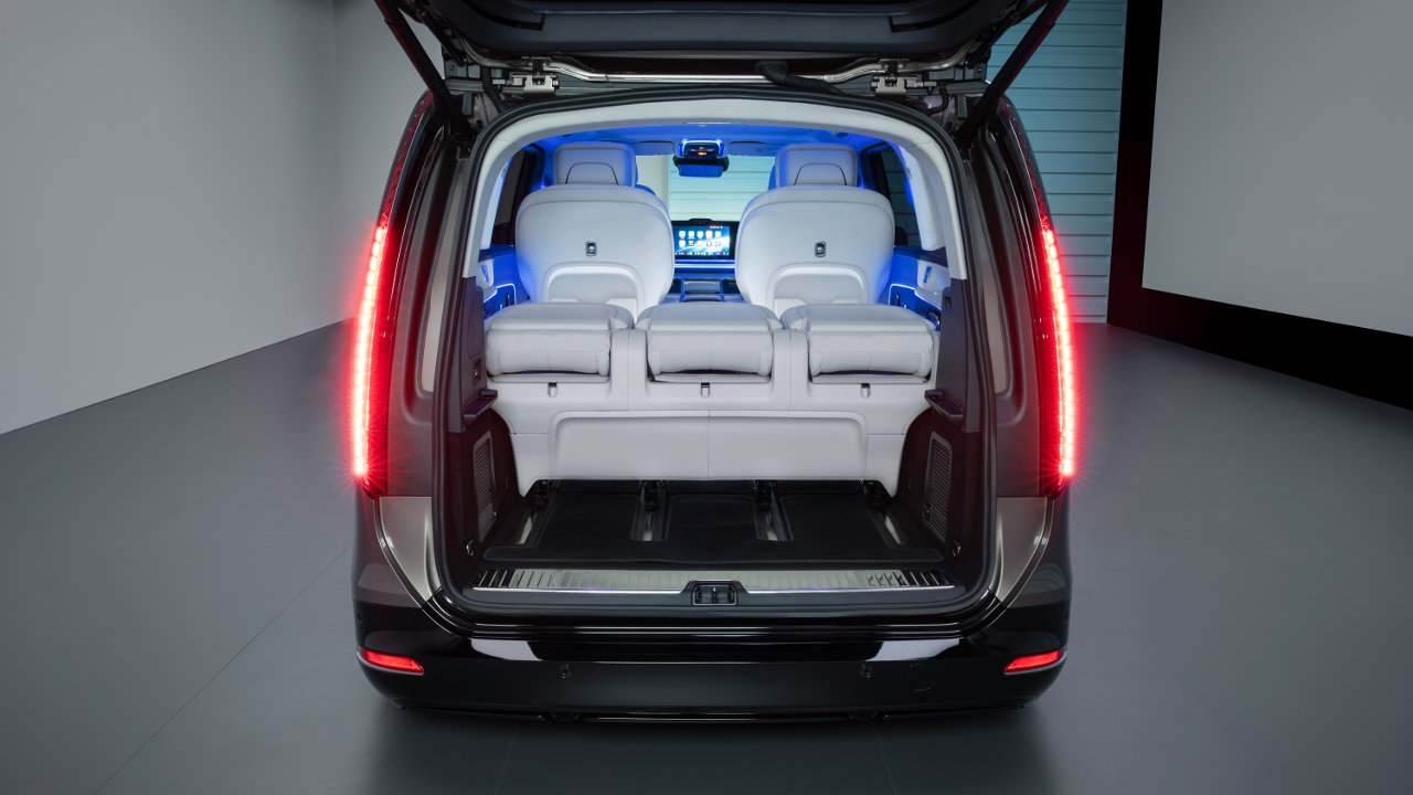 Επίσης, χάρη στο MB.OS, όλα τα ηλεκτρικά ρυθμιζόμενα πίσω καθίσματα και οι πάγκοι μπορούν να μετακινούνται μέσω του συστήματος infotainment, των χειριστηρίων στις πλευρικές επενδύσεις ή μέσω του Mercedes-Benz App. Η λειτουργία αυτή ονομάζεται Remote Variable Rear Space και επιτρέπει την αυτόματη διαμόρφωση που ξεκινά από τη μεγιστοποίηση του χώρου αποσκευών (Baggage) με μετακίνηση των καθισμάτων όσο πιο μπροστά γίνεται, έως και όσο πιο πίσω γίνεται (Executive) για μέγιστο χώρο για τα πόδια στην πρώτη πίσω σειρά.