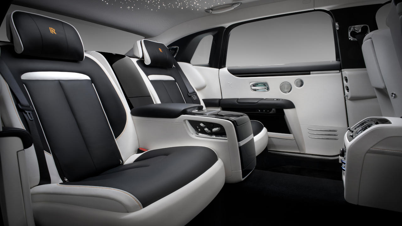 Γι αυτή την επιμηκυμένη έκδοση της Ghost η Rolls-Royce δημιούργησε αποκλειστικά και δύο νέες επενδύσεις από ξύλο. Ονομάζονται Obsidian Ayous και Dark Amber με την έμπνευση για την πρώτη να προέρχεται από τα μαγματογενή πετρώματα και τη δεύτερη να ενσωματώνει στα “νερά” του ξύλου αλουμίνιο.