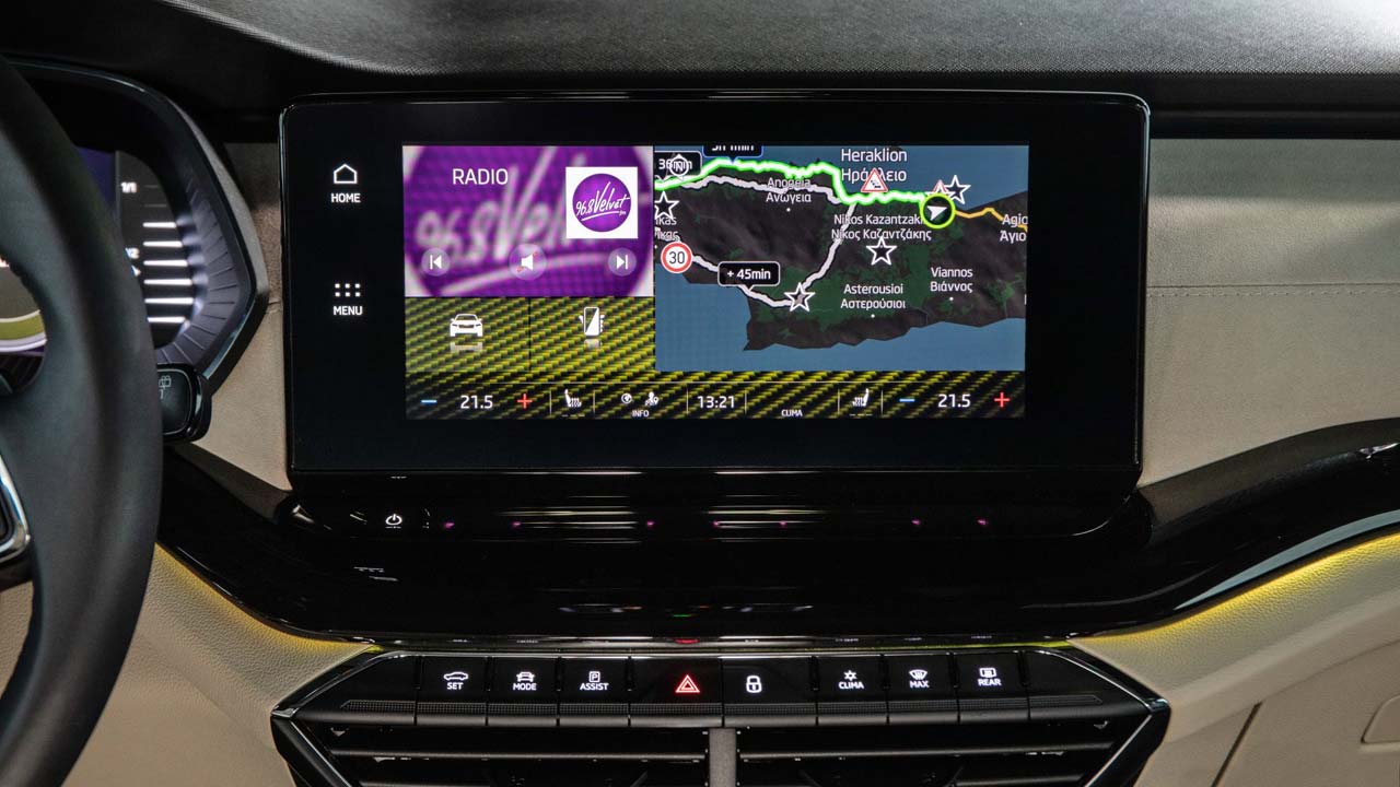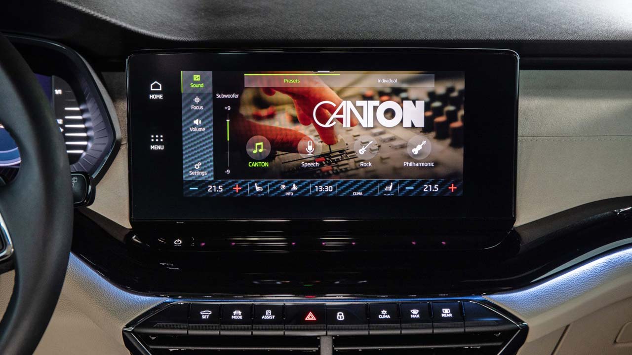 Η νέα Octavia προσφέρει έως και πέντε θύρες USB-C. Δύο θύρες USB-C στην μπροστινή κεντρική κονσόλα για τη φόρτιση ή τη σύνδεση συσκευών πολυμέσων και USB sticks με το σύστημα infotainment είναι στάνταρ. Προαιρετικά, μπορούν να τοποθετηθούν ακόμα δύο USB-C μόνο για φόρτιση, μαζί με μια πρίζα 230 V. Mία πέμπτη θύρα USB-C, για φόρτιση, μπορεί να τοποθετηθεί στην κονσόλα πάνω από τον καθρέφτη. Διαθέσιμο και phone box για επαγωγική φόρτιση κινητών τηλεφώνων ενώ ένα υψηλής πιστότητας ηχοσύστημα της Canton εξασφαλίζει κορυφαία ακουστική εμπειρία για οδηγό και επιβάτες.