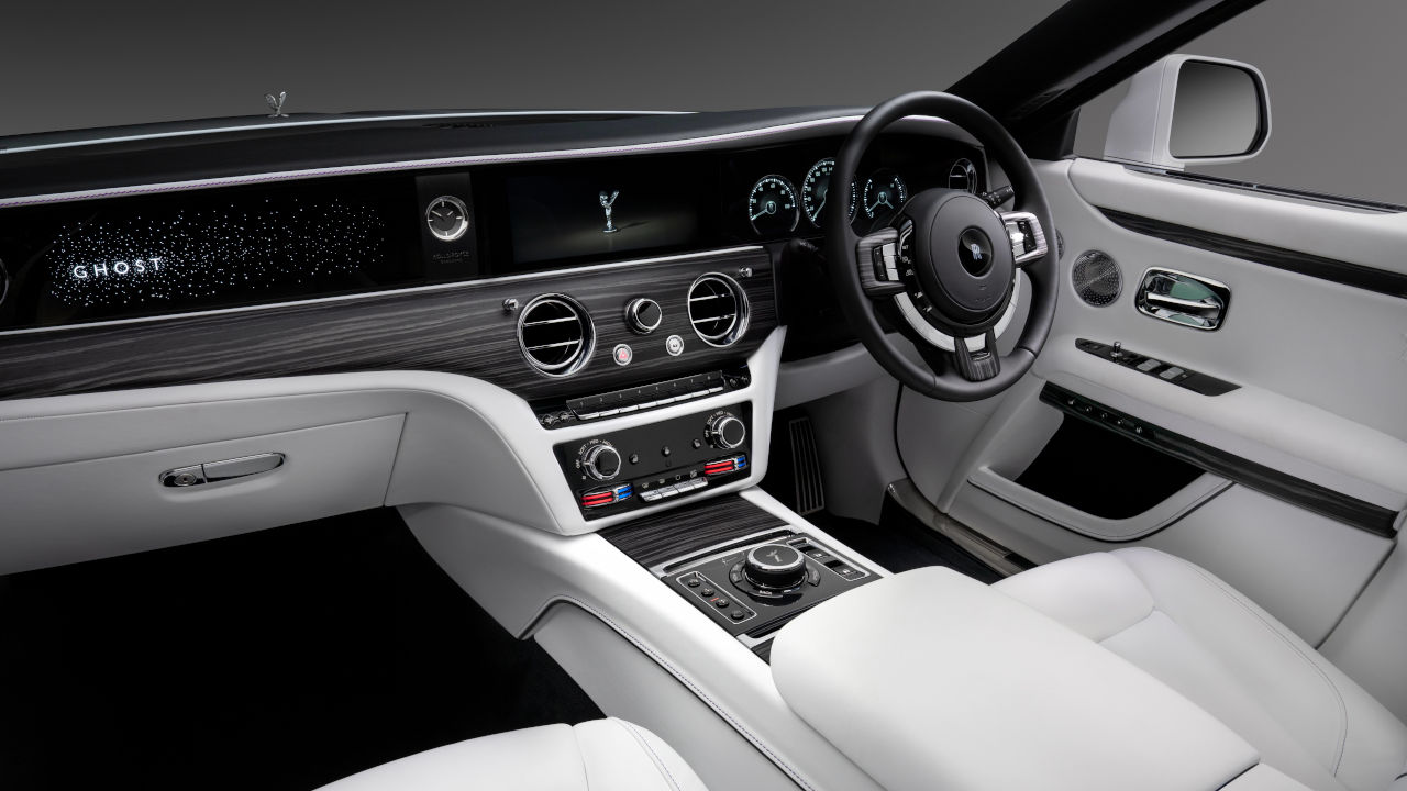 Για την ηρεμία στην καμπίνα φροντίζουν περισσότερα από 100 κιλά ηχομονωτικών υλικών (ακόμη και μέσα στα ελαστικά!), με το αλουμίνιο που είναι και το κύριο υλικό κατασκευής της Ghost να συμβάλλει καλύτερα στην ηχομόνωση έναντι του ατσαλιού και σύμφωνα με την Rolls-Royce. Στην πρωτόγνωρη αίσθηση που λογικά θα νιώσει εκείνος που θα μπει στη καμπίνα της Ghost συμβάλλει ο… αστερισμός του φωτιζόμενου ταμπλό και φυσικά εκείνος της οροφής.