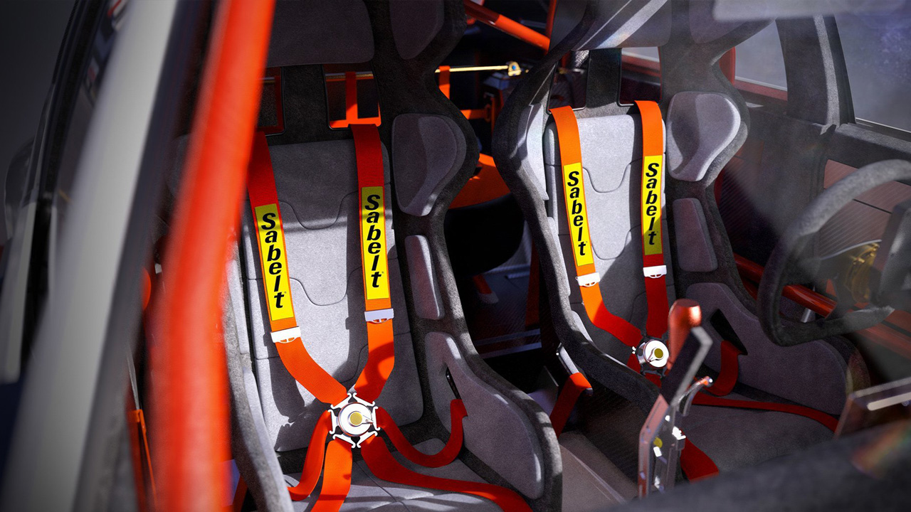 Στο πλαϊνό τμήμα βλέπουμε “φουσκωμένα” φτερά και αγωνιστικούς τροχούς, ενώ οι καθρέφτες είναι ενσωματωμένοι στο αμάξωμα. Αλλαγές υπάρχουν και στο πίσω μέρος, εκεί όπου συναντάμε αεροτομή στο επάνω μέρος και διαχύτη στο κάτω. Εννοείται ότι από το εσωτερικό έχει αφαιρεθεί κάθε τι περιττό! Πίσω από το αγωνιστικό τιμόνι υπάρχει μία ψηφιακή οθόνη, τα καθίσματα είναι bucket με ζώνες τεσσάρων σημείων της Sabelt, ενώ δεν απουσιάζουν όλα τα μέτρα ασφαλείας, όπως το roll cage και ο πυροσβεστήρας.