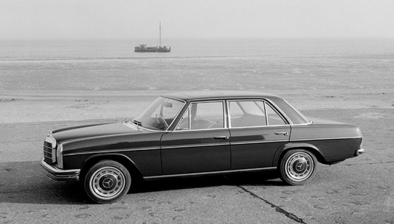H μπλε Mercedes του Αλέξανδρου κυκλοφορούσε με μεγάλη ταχύτητα στους όχι και τόσο πολυσύχναστους δρόμους της Αθήνας. Πίσω από το τιμόνι της βρισκόταν είτε ο ίδιος, είτε συχνότερα ο προσωπικός του σοφέρ κύριος Σ. Αβραμίδης. Ο ίδιος σε παλαιότερη συνέντευξή του στην εφημερίδα “Το Βήμα” είχε πει: «Τρέχαμε με 150 χιλιόμετρα την ώρα στους άδειους τότε αθηναϊκούς δρόμους και όλοι κοιτούσαν με θαυμασμό το αμάξι με τα ηλεκτρικά παράθυρα και τα μονίμως κλειστά τζάμια ακόμη και το καλοκαίρι, αφού βάζαμε σε λειτουργία τον μηχανισμό του κλιματισμού. Ο Αλέξανδρος δεν άφηνε κανέναν να αγγίζει τα αυτοκίνητά του εκτός από τους οδηγούς του. Όταν πηγαίναμε για σέρβις στην αντιπροσωπεία επέτρεπε μόνο σε δύο συγκεκριμένους τεχνικούς να εκτελέσουν τις εργασίες συντήρησης και στις περισσότερες περιπτώσεις τυλίγαμε το αμάξωμα του αυτοκινήτου με κουβέρτες για να μην του προκαλέσουν σημάδια ή γρατζουνιές. Οι κουβέρτες αυτές είναι ακόμη μέσα στο αυτοκίνητο. Από μικρός ο Αλέξανδρος λάτρευε τα αυτοκίνητα όσο και τα αεροπλάνα και τα άλλαζε σαν να ήταν παιχνίδια, ενώ δεν επέτρεπε σε κανέναν να τα χρησιμοποιεί χωρίς την άδειά του. Θυμάμαι ακόμα πόσο πολύ νευρίασε όταν έμαθε μια μέρα πως η Τζάκι (Κένεντι) χρησιμοποίησε τη Mercedes του. Όταν ήμασταν μόνοι στο αυτοκίνητο καθόταν πάντα στο μπροστινό κάθισμα και πήγαινε στις πίσω θέσεις μόνο όταν μεταφέραμε κάποιον καλεσμένο. Μερικές φορές όταν ήταν κουρασμένος ξάπλωνε στα πίσω καθίσματα για να κοιμηθεί όσο διαρκούσε η διαδρομή. Διέμενε μόνιμα στο ξενοδοχείο Χίλτον και από εκεί ξεκινούσαμε κάθε πρωί για τα γραφεία της Ολυμπιακής. Θυμάμαι ακόμη τις δεκάδες κλήσεις που είχε πάρει για παράνομο παρκάρισμα καθώς δεν ήθελε ποτέ να αργεί στα ραντεβού του.» Η γερμανική berlina ήταν σχεδιασμένη από τον Paul Bracq και ήταν το πρώτο και το μόνο αυτοκίνητο νέας σχεδίασης της φίρμας, με σήμα κατατεθέν τα κάθετα φωτιστικά σώματα στη μάσκα του. Έπαιρνε ζωή από έναν εξακύλινδρο κινητήρα χωρητικότητας 2.800κ.εκ. που απέδιδε 130 ίππους και εξοπλιζόταν με αυτόματο κιβώτιο ταχυτήτων τεσσάρων σχέσεων. Επιπλέον διέθετε λευκά δερμάτινα καθίσματα, επένδυση από δέρμα και ξύλο τριανταφυλλιάς στο ταμπλό, κλιματισμό, ηχοσύστημα με αναγνώστη μαγνητοταινιών, τηλεσκοπική κεραία που ανοιγόκλεινε ηλεκτρικά, κεντρικό κλείδωμα και ηλεκτρικά παράθυρα. Όλα αυτά και πολλά άλλα κομφόρ εν έτει 1972! Μετά το τραγικό αεροπορικό δυστύχημα του Αλέξανδρου Ωνάση με το μοιραίο αεροπλάνο Piaggio 136, με νηολόγιο SX-80C, να γίνεται συντρίμμια στην πίστα του αεροδρομίου του Ελληνικού, ο πατέρας του βυθίζεται στο πένθος και αρχίζει σταδιακά να αδιαφορεί για όλα. Έτσι η Mercedes-Benz, μαζί με μερικά πανάκριβα έπιπλα διάσημων σχεδιαστικών οίκων που κοσμούσαν το γραφείο του Αλέξανδρου καταλήγουν σε μία αποθήκη του αεροδρομίου του Ελληνικού, κυριολεκτικά ξεχασμένα από όλους για δεκαετίες ολόκληρες.