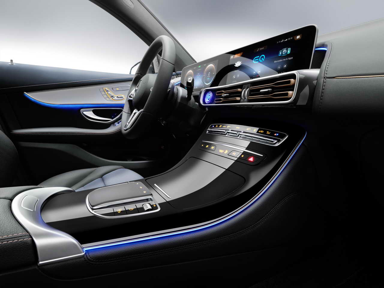 Ο πλούσιος βασικός εξοπλισμός της Mercedes-Benz EQC 400 4MATIC δίνει μία πρόγευση του μέλλοντος, αφού περιέχει χαρακτηριστικά και από τους τέσσερις πυλώνες της στρατηγικής CASE (“Connected”, “Autonomous”, “Shared & Services” και “Electric Drive”). Ενδεικτικά, το πρωτοποριακό σύστημα MBUX διαθέτει υπηρεσίες που εξελίχθηκαν ειδικά για τη μάρκα EQ και αποτελεί ένα από τα highlights της νέας EQC. Περιλαμβάνει εξ’ αποστάσεως υπηρεσίες και πλοήγηση που προσφέρονται στον στάνταρ εξοπλισμό της EQC και διαθέτουν μία γκάμα λειτουργιών ειδικά για την ηλεκτροκίνηση. Για παράδειγμα, το σύστημα πλοήγησης με εύρεση της ιδανικής διαδρομής για όσο το δυνατόν μεγαλύτερη αυτονομία καθώς και η αναγνώριση σταθμών φόρτισης. Επιπλέον, υπάρχουν δείκτες όπως ο μετρητής ενέργειας στη δεξιά πλευρά του ψηφιακού πίνακα οργάνων, ο οποίος αντικαθιστά το στροφόμετρο και είναι κατασκευασμένος ειδικά για τη Mercedes-Benz EQC.