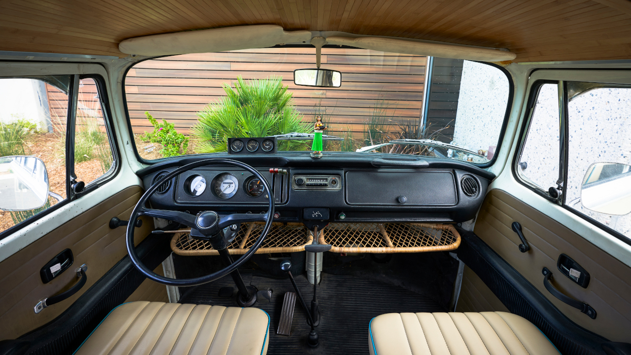 Το Type 2… e-Bus έχει μείνει κατά τα άλλα σχεδόν σε απόλυτα αυθεντική κατάσταση με μόνη εξαίρεση την προσθήκη του δείκτη για την κατάσταση φόρτισης των μπαταριών. Ο κλασικός επιλογέας ταχυτήτων έχει νέο ρόλο πλέον αφού με τη χρήση του ο οδηγός επιλέγει την όπισθεν, τη θέση για πάρκινγκ και την μία και μοναδική ταχύτητα του ηλεκτρικού κινητήρα αλλά και τα προγράμματα για την ανάκτηση ενέργειας κατά το φρενάρισμα, όπως ακριβώς και το e-Golf.