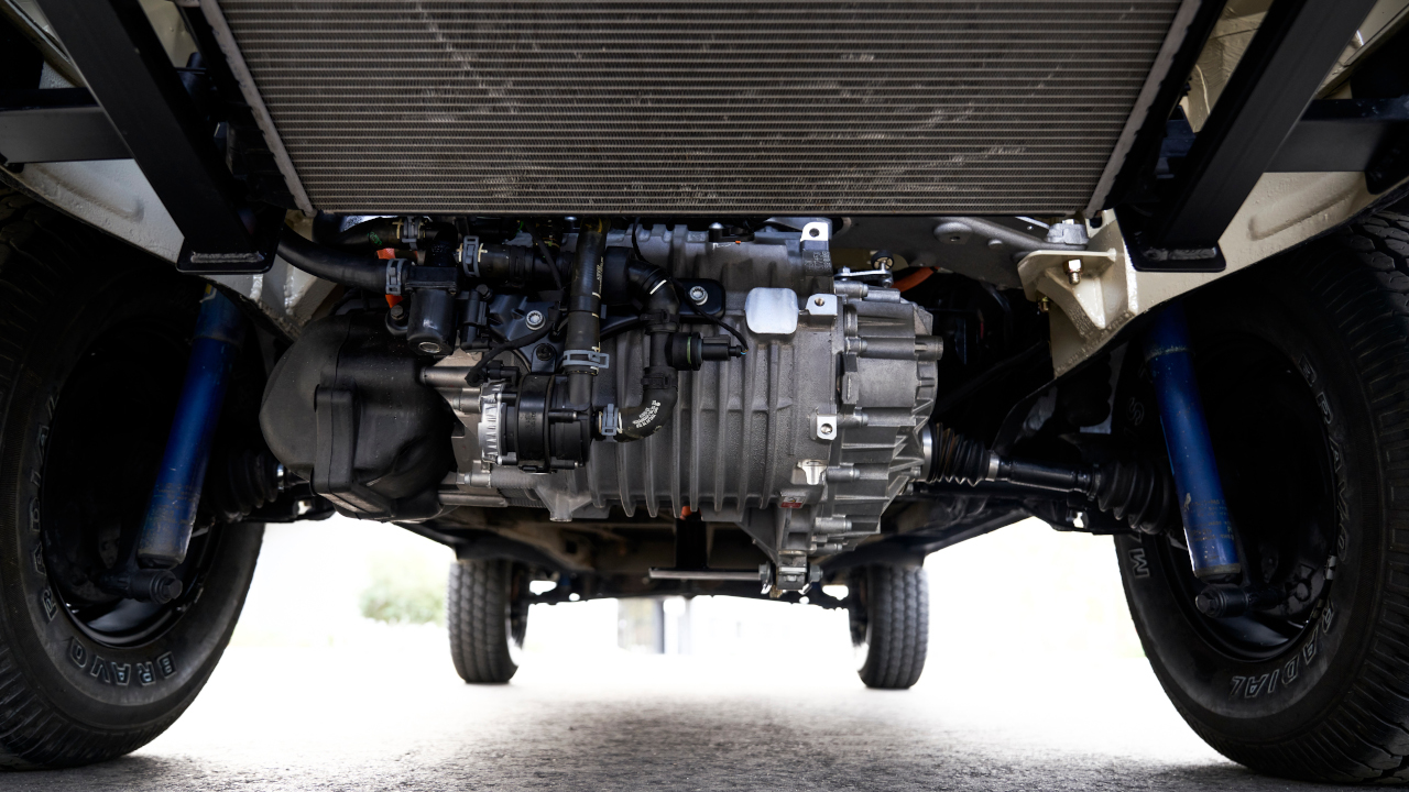 Στην Κλούβα της VW λοιπόν τοποθετήθηκε ο ηλεκτρικός κινητήρας των 100KW του e-Golf, εκεί ακριβώς που βρισκόταν και ο αερόψυκτος επίπεδος τετρακύλινδρος του Type 2 των 60 ίππων, υπερδιπλασιάζοντας έτσι την ισχύ του κλασικού μοντέλου, στους 135 ίππους. Μάλιστα δεν αλλάχτηκε ούτε η κλασική ανάρτηση.