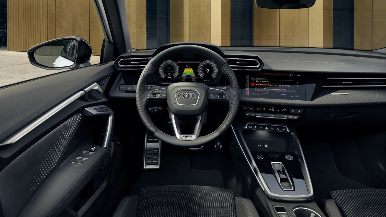 Το A3 Sportback TFSIe αποκαλύπτει τις σπορ δυνατότητες του στο πρόγραμμα S του κιβωτίου διπλού συμπλέκτη. Στο πρόγραμμα “Dynamic” του drive select mode ή όταν ενεργοποιείται το kick down, το κινητήριο σύστημα παρέχει την πλήρη ισχύ του στις φάσεις επιτάχυνσης. Στη λειτουργία EV, ο κινητήρας εσωτερικής καύσης ενεργοποιείται επίσης όταν ο οδηγός πραγματοποιεί kickdown.