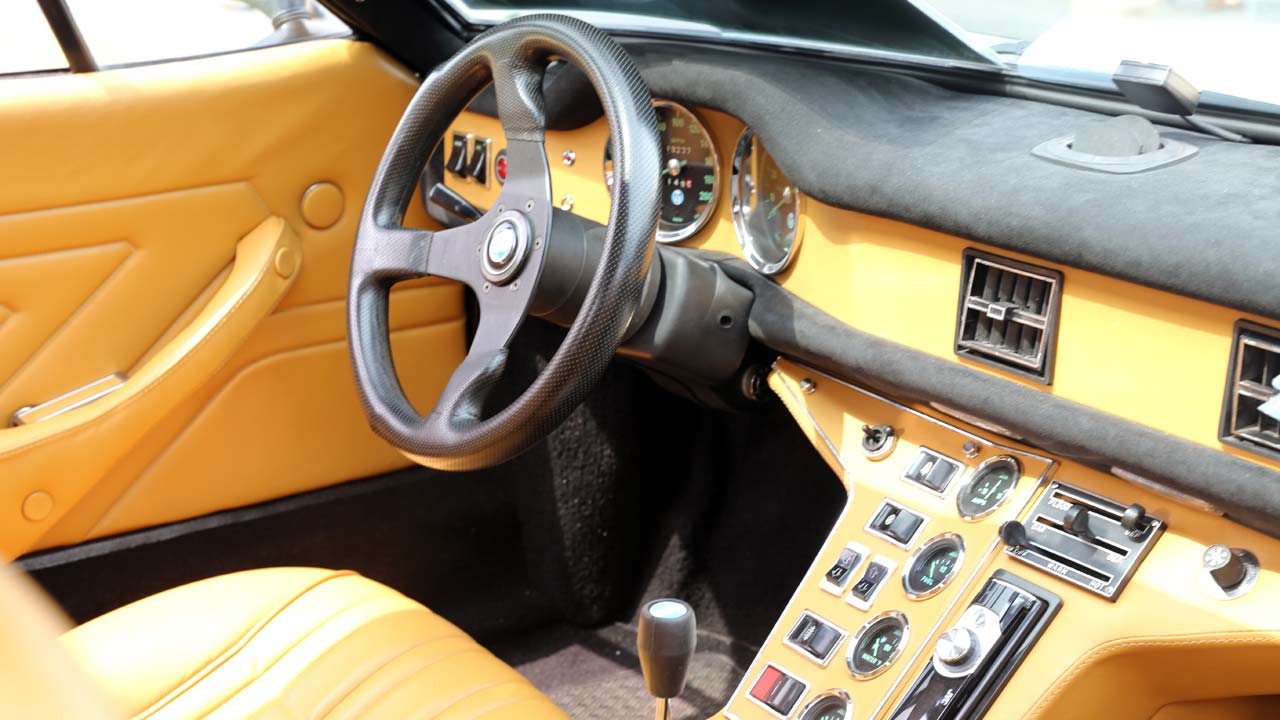 Περνώντας στη θέση του οδηγού βρισκόμαστε σε ένα αμιγώς δερμάτινο σαλόνι σε ανοιχτές γήινες αποχρώσεις, όπως και οι μοκέτες. Το ξύλινο ταμπλό και η στεφάνη του τιμονιού σε συνδυασμό με τις τρεις μεταλλικές ακτίνες του, το μοχλό των φλας και το σφαιρικό μοχλό ταχυτήτων δίνουν μια αίσθηση πολυτέλειας αλλά και έναν σπορ αέρα. Γυρνώντας το κλειδί ζωντανεύει ο V8 κινητήρας και πιέζοντας το γκάζι παράγεται ένας βαθύς μπάσος ήχος που ξελογιάζει τα αυτιά καθώς τα καυσαέρια ταξιδεύουν μέσα στη χειροποίητη χαλύβδινη εξάτμιση. Παρατηρεί κανείς άμεσα πως το πεντάλ του γκαζιού στη Grifo είναι εξαιρετικά ελαφρύ εν αντιθέσει με αυτά των Ferrari της εποχής. Βάζουμε πρώτη στο κιβώτιο και ξεκινάμε για μία βόλτα διαπιστώνοντας κατευθείαν το ατέρμονο εύρος στροφών της και τα τεράστια αποθέματα ροπής του κινητήρα, με το στροφόμετρο να σκαρφαλώνει αργά, καθώς το αυτοκίνητο μπορεί να επιταχύνει μέχρι τα 110 χλμ/ώρα μόλις στην πρώτη ταχύτητα! Η Iso Grifo είναι ακριβώς ότι ονειρεύτηκαν οι σχεδιαστές της και ότι ονειρευόμαστε εμείς οι λάτρεις των ιταλικών σπορ αυτοκινήτων και των V8, ένα πολυτελές Grand Tourer υψηλών επιδόσεων.