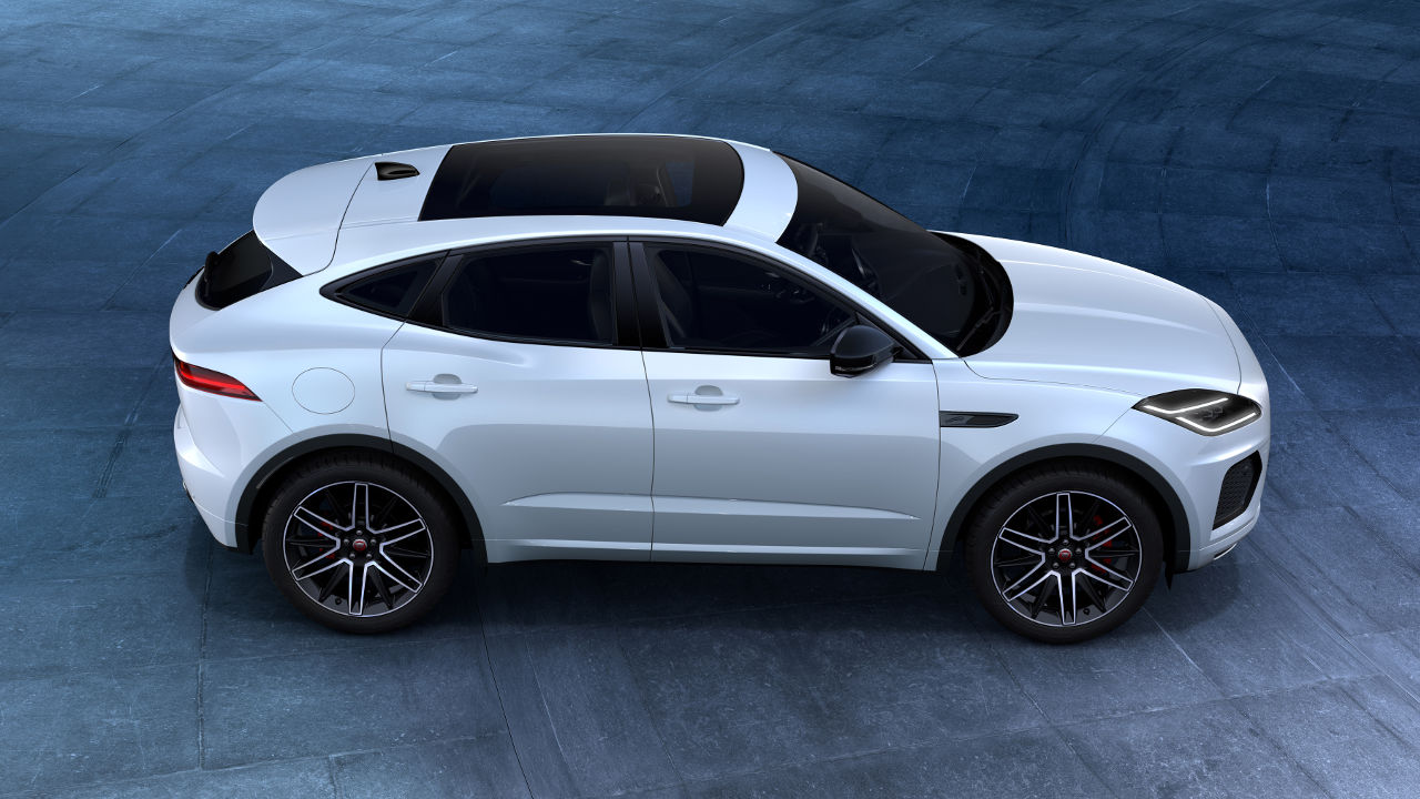 Εκτός από την πανοραμική οροφή, η αισθητική του βρετανικού SUV διανθίζεται με μαύρα καλύμματα καθρεπτών, φιμέ κρύσταλλα για τα τζάμια αλλά και μαύρα φιλέτα που κάνουν την εμφάνιση τους στον εμπρός προφυλακτήρα και την χαρακτηριστική γρίλια της E-Pace, ενώ σε μαύρο γυαλιστερό χρώμα είναι και οι αεραγωγοί που βρίσκονται στα εμπρός φτερά.