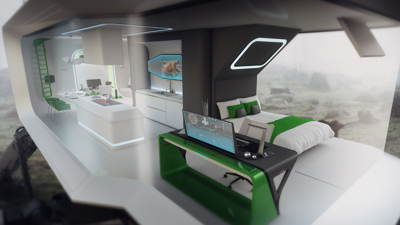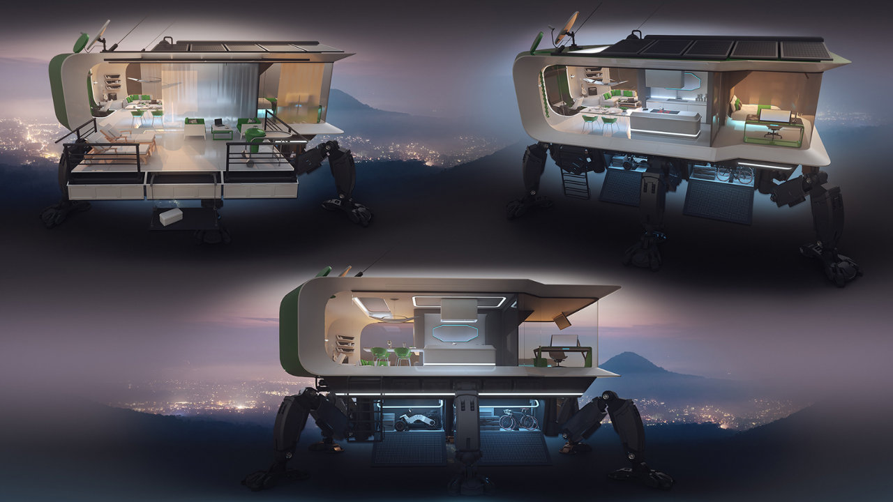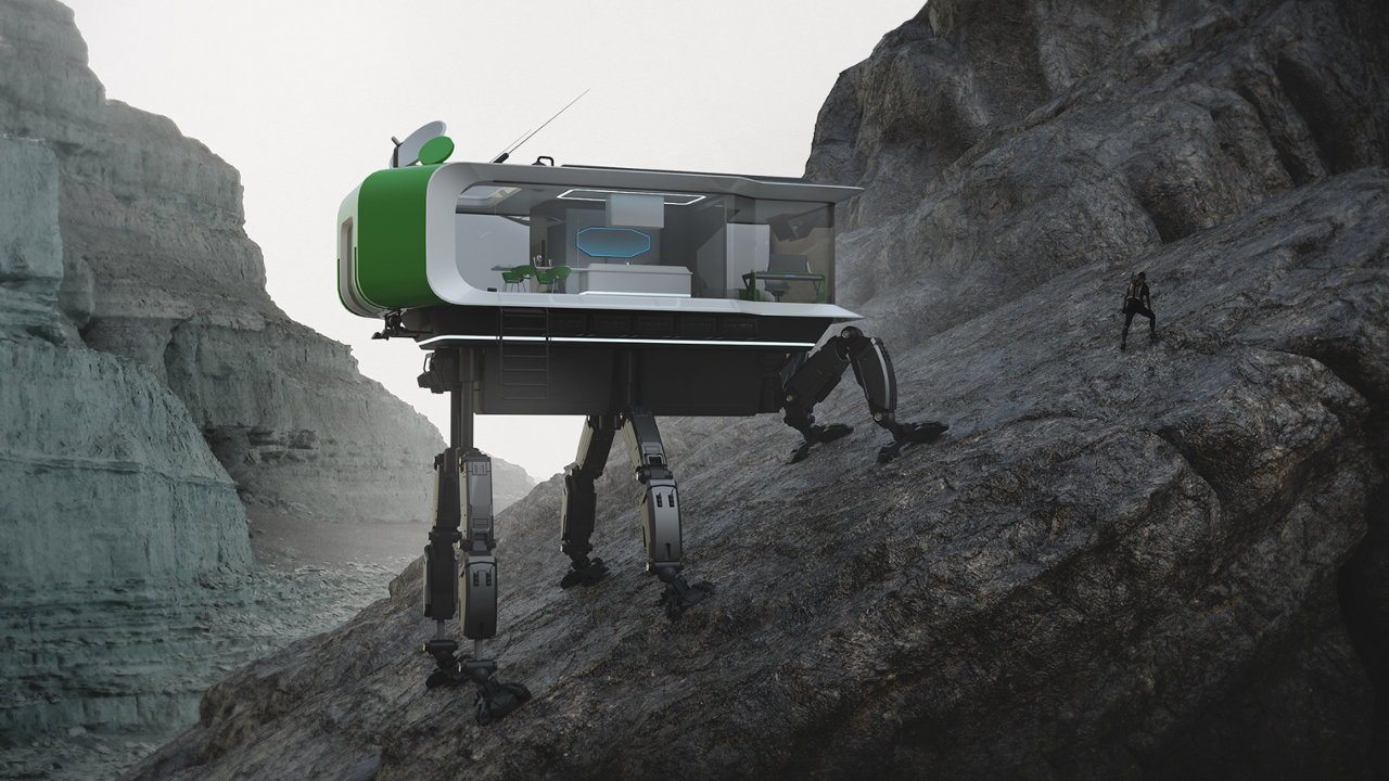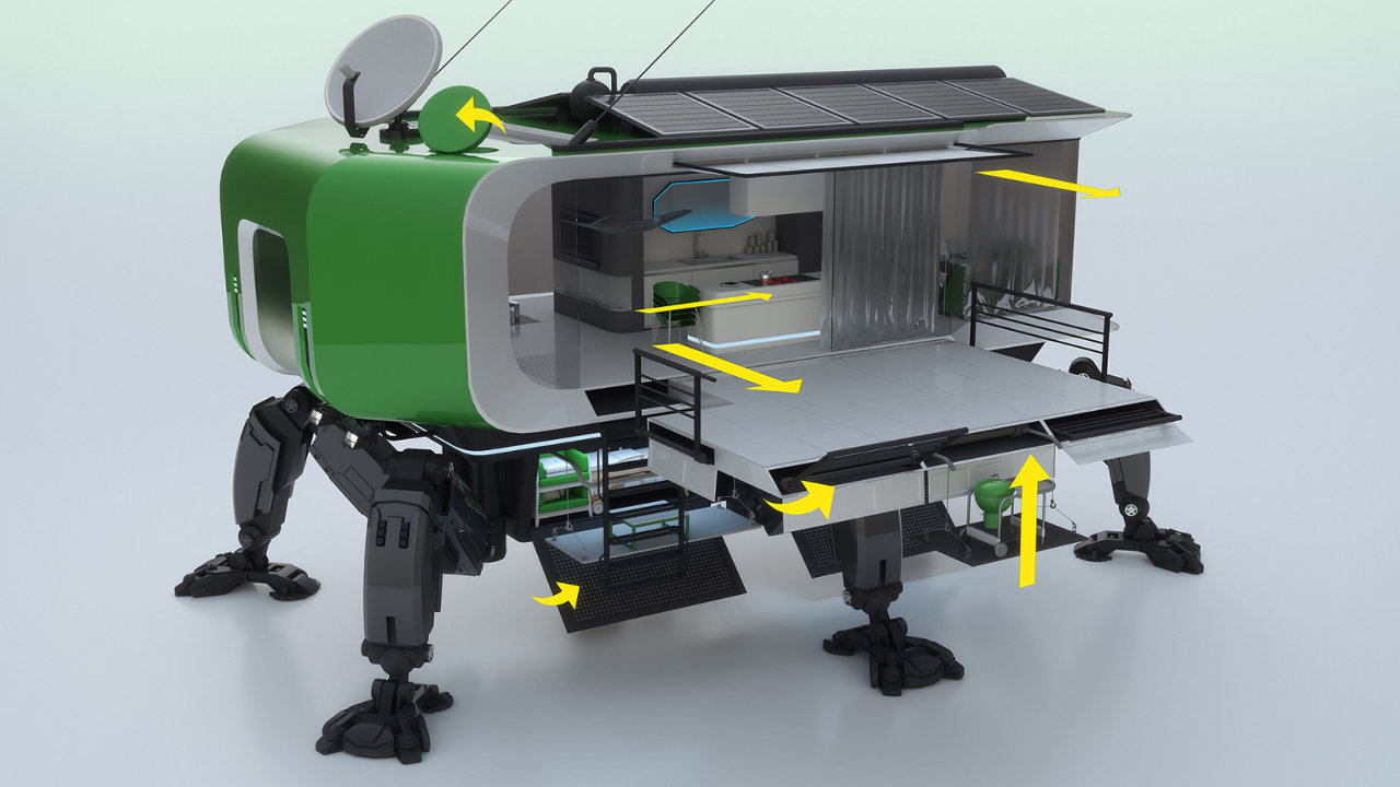 Το concept αποτελεί δημιουργία του Encho Enchev και φυσικά το highlight είναι τα έξι αρθρωτά πόδια που το δίνουν τη δυνατότητα να κινείται και να σκαρφαλώνει σε σημεία που φαντάζουν αδύνατα. Ο Βούλγαρος σχεδιαστής αναφέρει ότι στη σχεδίαση του περιλαμβάνονται και έξι καμάκια που εκτοξεύονται, λειτουργούν ως άγκυρες και μπορούν να σταθεροποιήσουν το σπίτι σε εντυπωσιακά σημεία.