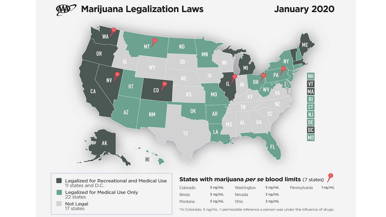Σήμερα η ψυχαγωγική χρήση της κάνναβης είναι νόμιμη σε 11 Πολιτείες της Αμερικής. Το μόνο σίγουρο είναι ότι πρέπει να εξεταστεί αν επηρεάζει την οδηγική συμπεριφορά.