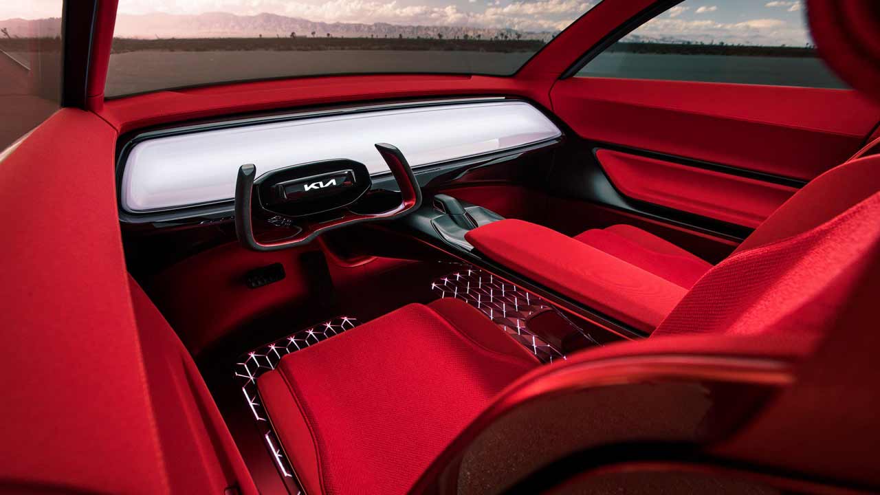 Στο εσωτερικό, οι σχεδιαστές του Kia Habaniro ξέφυγαν από τα… τετριμμένα αφού δεν συναντάμε πολλές ή μεγάλες οθόνες. Τουναντίον, δεν υπάρχει τίποτα από αυτά που έχουμε συνηθίσει να βλέπουμε, καθώς η Kia πέρασε όλες τις ενδείξεις σε head-up display στο εμπρός παρμπρίζ, ενώ μία επιφάνεια αφής, κρυμμένη στην κεντρική κονσόλα επιτρέπει τον απαραίτητο έλεγχο στον οδηγό.