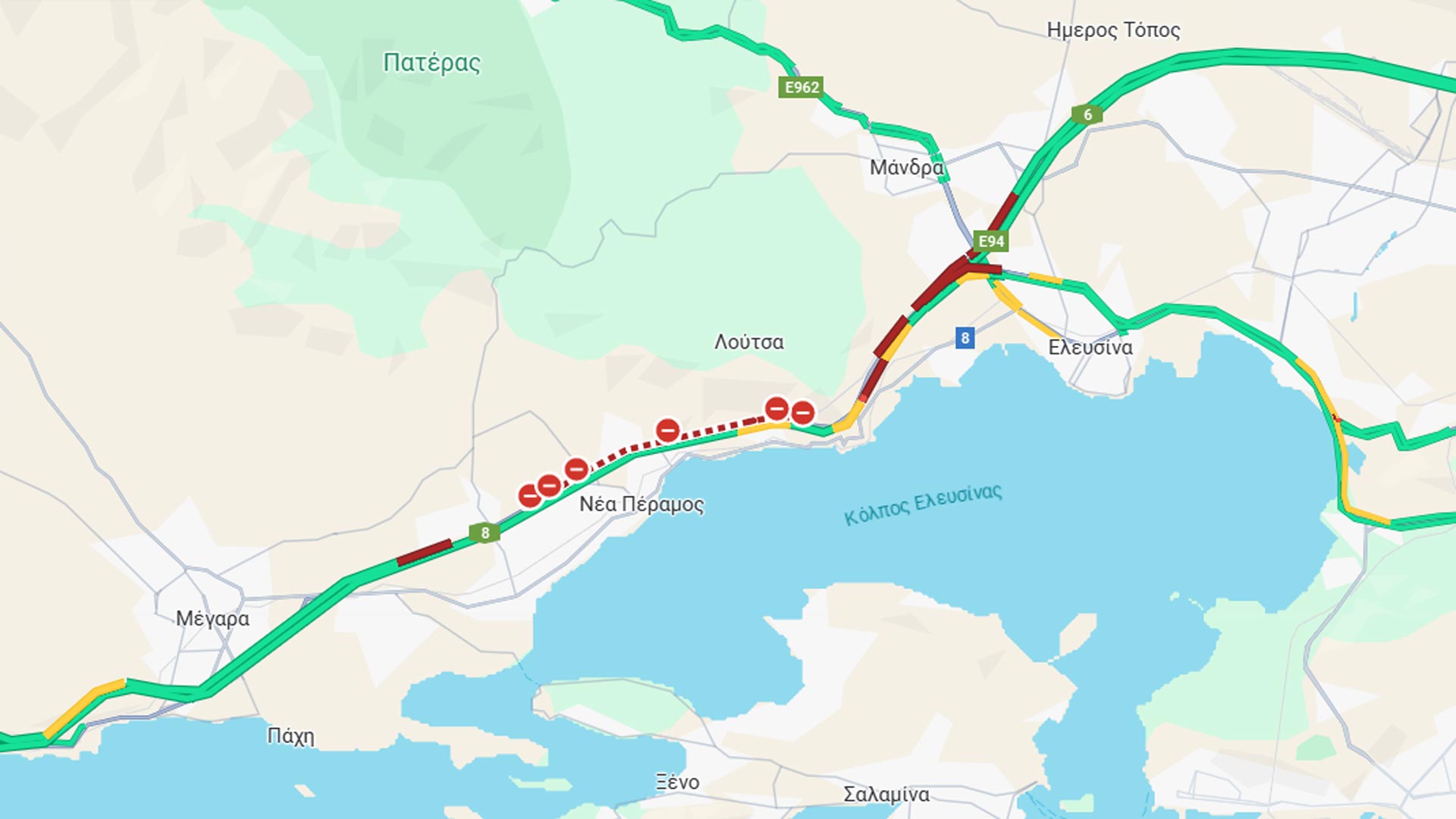 Όπως μπορείτε να δείτε και στην παραπάνω εικόνα από το Google Map, στα διόδια της Ελευσίνας έχει δημιουργηθεί ουρά που φτάνει μέχρι και την Αττική Οδό. Η τελευταία, με ανακοίνωσή της ενημερώνει τους οδηγούς πως γίνεται υποχρεωτική έξοδος οχημάτων στην έξοδο προς Μάνδρα. Ακολουθεί η ανακοίνωση: