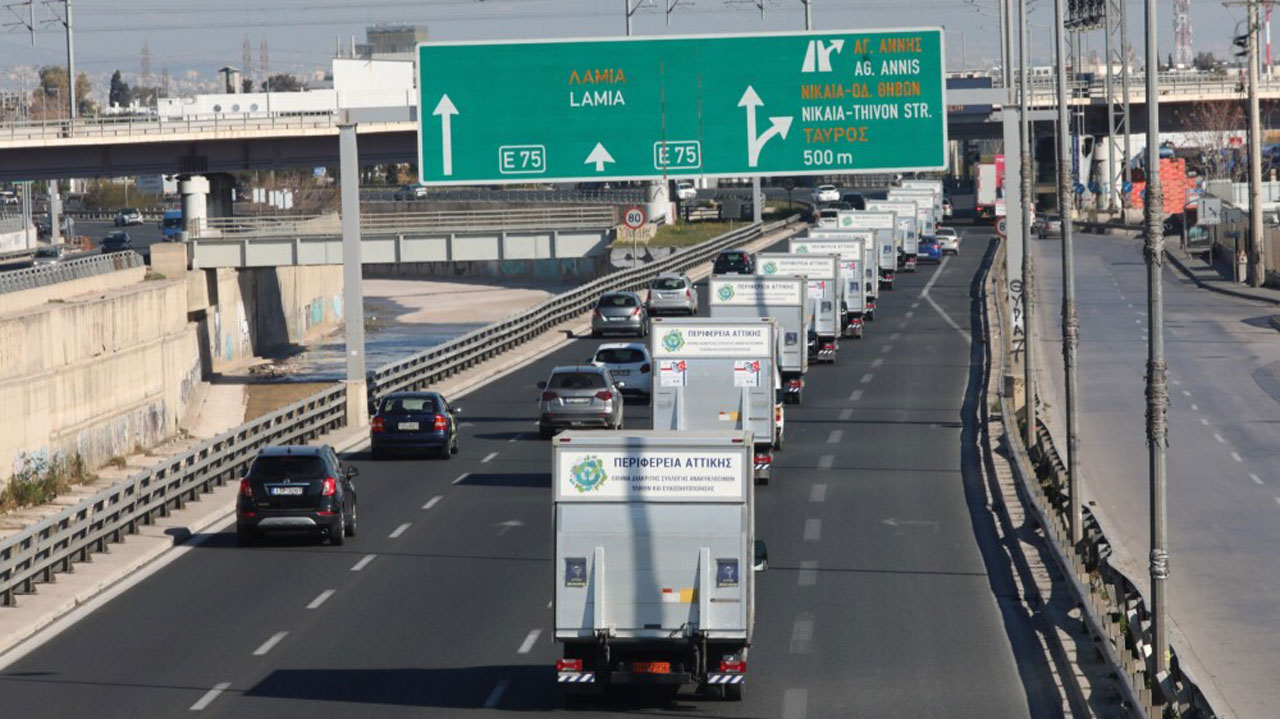 Με πρωτοβουλία της Περιφέρειας Αττικής, των Δήμων, του “Όλοι Μαζί Μπορούμε” και του ΙΣΑ, πάνω από 110 τόνοι ανθρωπιστικής βοήθειας συγκεντρώθηκαν και το μεγάλο ταξίδι από το ΣΕΦ μέχρι τις αποθήκες συγκέντρωσης της Ραιδεστού ξεκίνησε. Τα 50 οχήματα της Περιφέρειας Αττικής διανύουν μία απόσταση 955 χιλιομέτρων μέχρι την τουρκική πόλη.