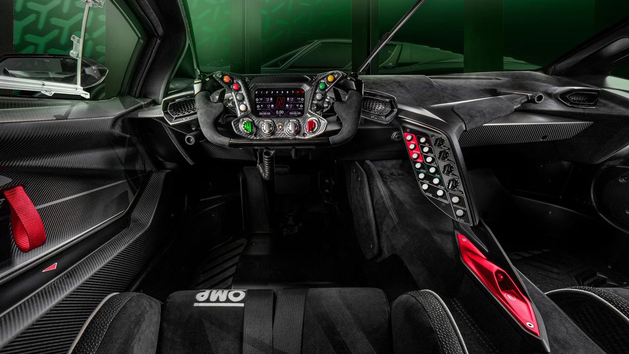 Στο εσωτερικό, η αίσθηση είναι ξεκάθαρα αγωνιστική. Τα ανθρακονημάτινα καθίσματα φέρουν έγκριση της FIA και το τιμόνι δε διαφέρει σε τίποτα από ένα μονοθέσιο των αγώνων αντοχής.