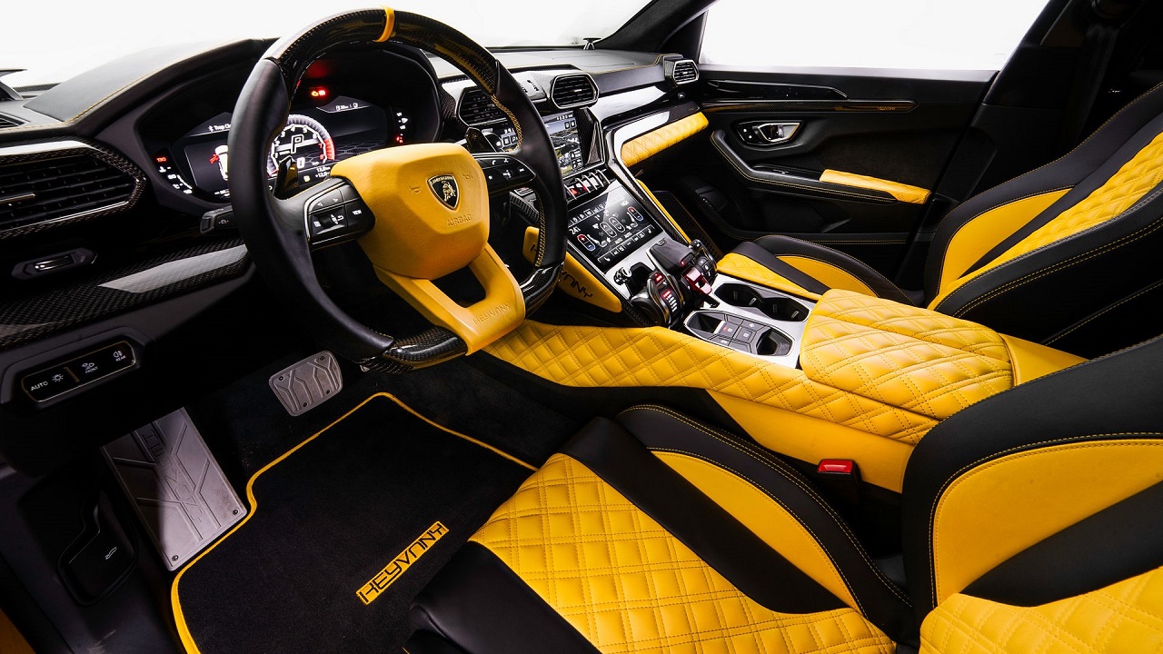 Η υπερβολή συνεχίζεται και στους τροχούς, με τις σφυρήλατες ζάντες μεγέθους 24 ιντσών να έχουν ελαστικά με πέλμα 295 μπροστά και 355 πίσω. Όλες αυτές οι carbon επιφάνειες εξοικονομούν συνολικά 41 κιλά από το αμάξωμα. Στο εσωτερικό της Lamborghini Urus κυριαρχεί το κίτρινο χρώμα και οι carbon λεπτομέρειες.