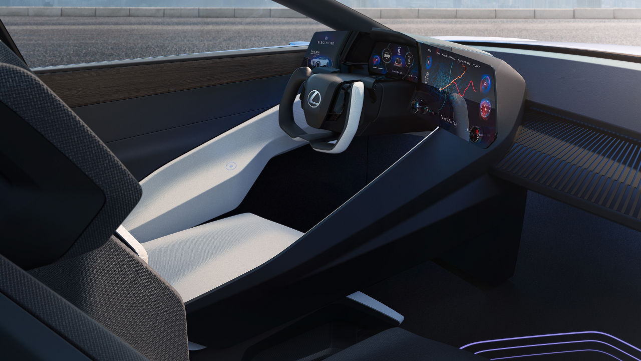 Επόμενο σημείο που πρέπει να σταθώ στο Lexus LF-Z Electrified είναι η σχεδίαση του ταμπλό του, η οποία δεν θα ήταν εφικτή σύμφωνα με τη Lexus σε ένα μοντέλο με συμβατικούς κινητήρες εσωτερικής καύσης. Οι Ιάπωνες ονομάζουν τη νέα concept πρόταση του “Tazuna cockpit” με το Tazuna να μεταφράζεται σε… “χαλινάρια” από τα ιαπωνικά. Οι τρεις οθόνες που απαρτίζουν τον πίνακα πληροφοριών του οδηγού έχουν οδηγοκεντρική προσέγγιση και βρίσκονται σε ύψος στο φυσικό οπτικό πεδίο που τις κάνει εύκολα “προσβάσιμες” στα μάτια, ενώ στη φαρέτρα περιλαμβάνεται και HUD επαυξημένης πραγματικότητας.
